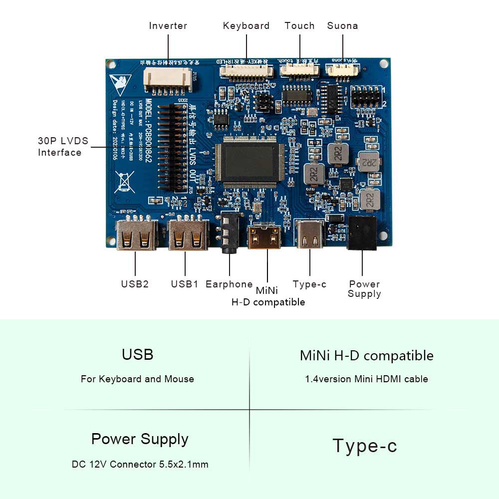 HD Type-C USB LCD Board Work for LVDS Interface LCD Screen