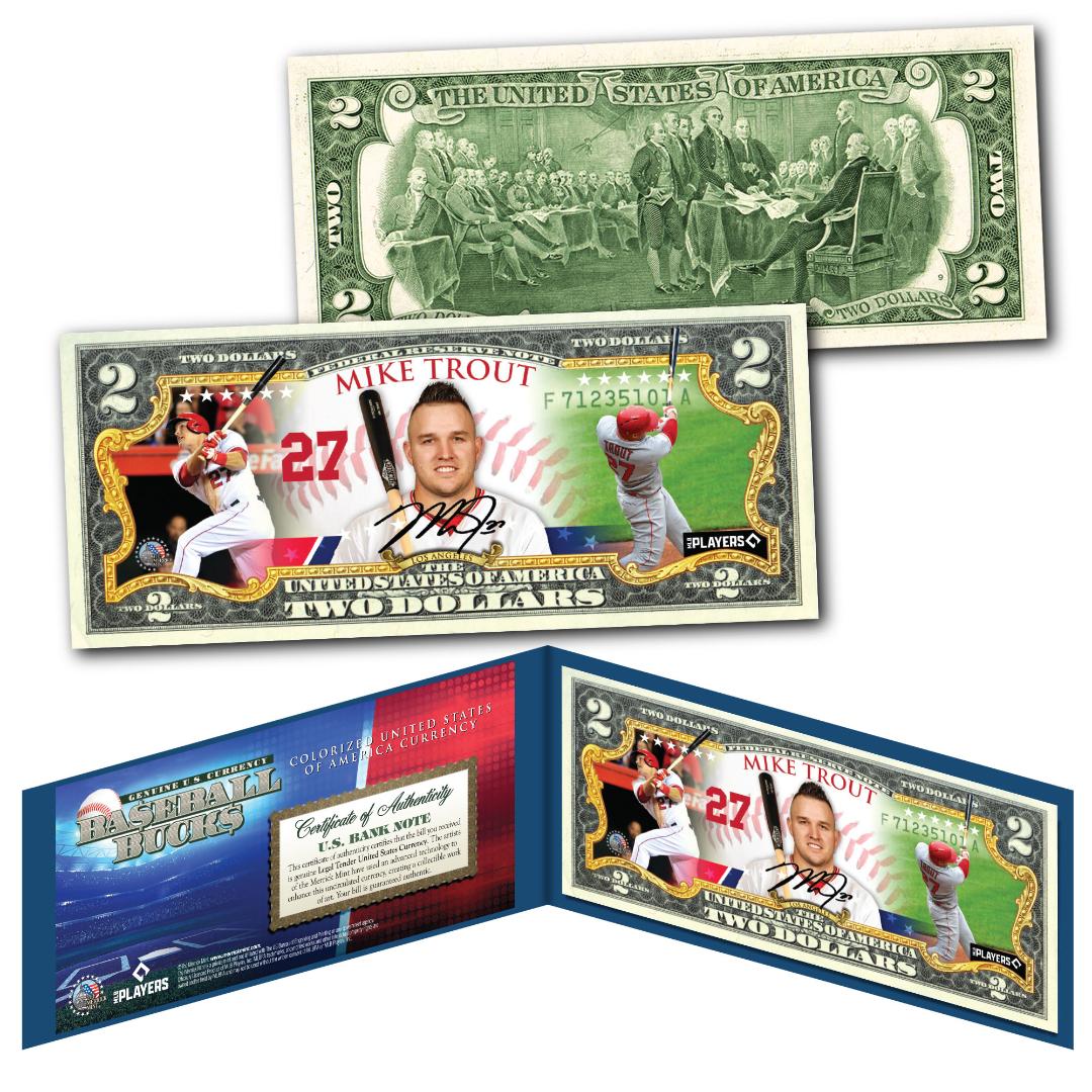 MIKE TROUT MVP California Angels Baseball Bucks MLB Player Authentic $2 US Bill