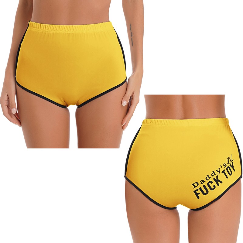 Womens Letter Printing Mid Waist Booty Shorts Casual Sports Yoga Hot Pants.