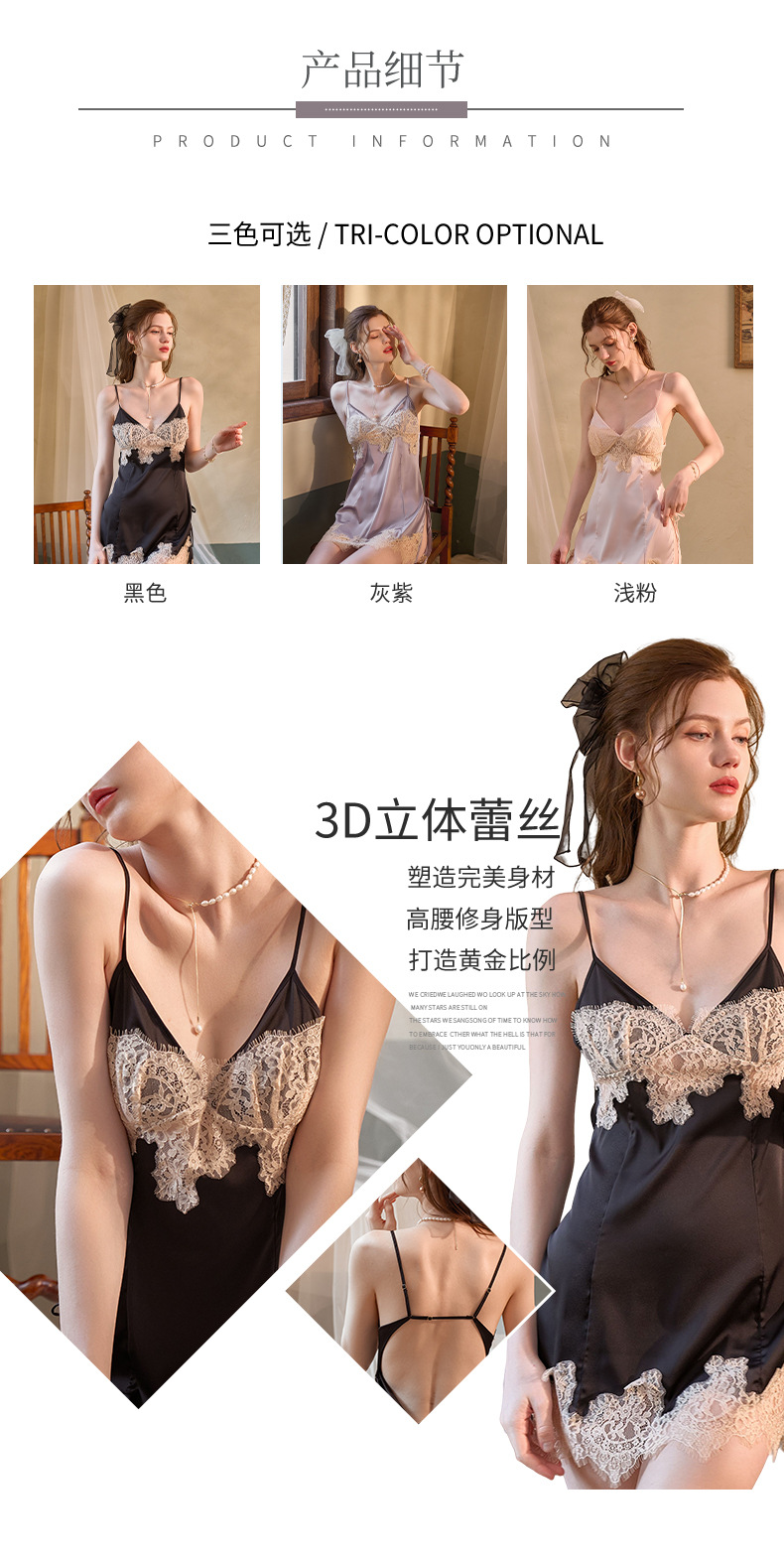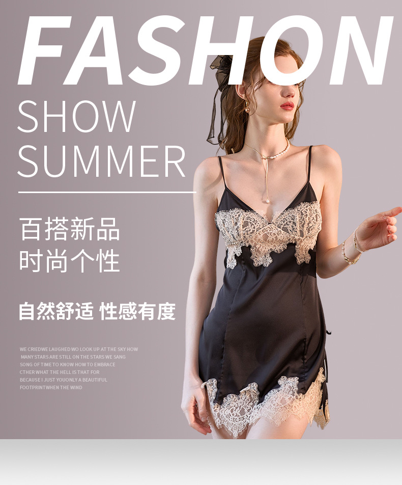 New Sexy Pajamas Women's Summer Ice Silk Lace Hanging Pajama Dress Pajama Set