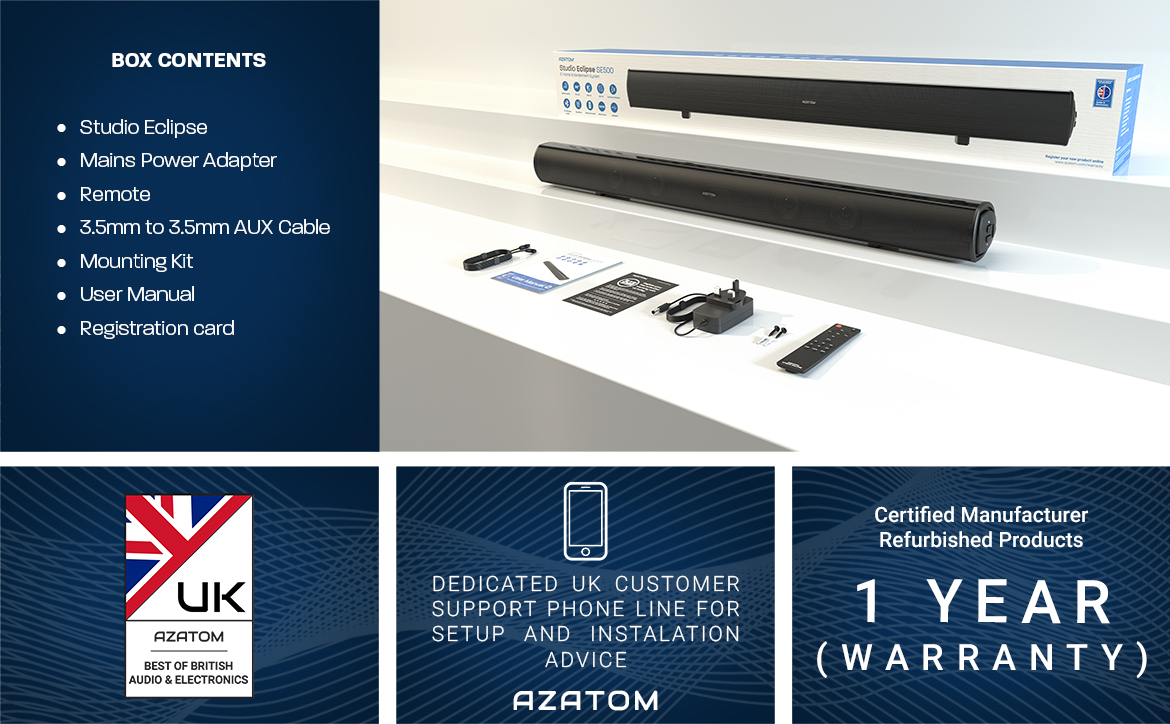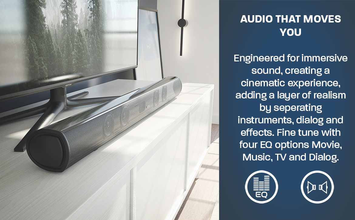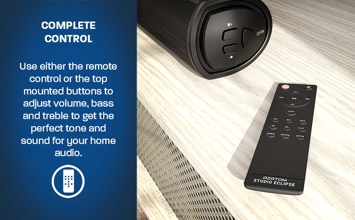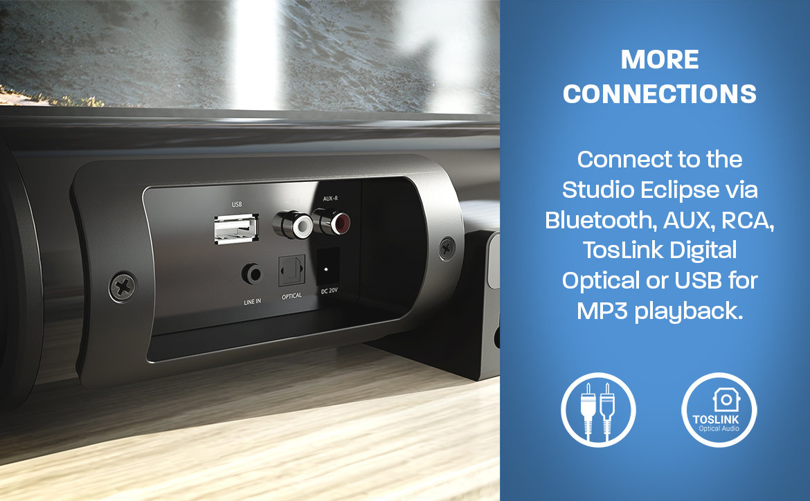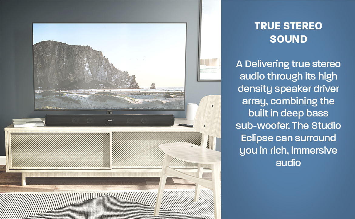 Get ready to experience movie-quality sound in the comfort of your own home with the Studio Eclipse! With 180W power, 36" size, 2.1 sound, and built-in subwoofer, you'll feel like you're in the middle of the action.