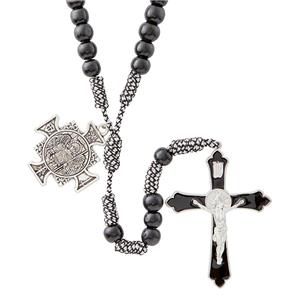 This commanding rosary is the perfect blend of tradition and modernity. Smooth wood beads are complimented by black and white-patterned woven cord. Intricate two-piece crucifix and Saint Michael cross give this rosary traditional weight and gravitas. Treasure your devotion with this meaningful rosary!