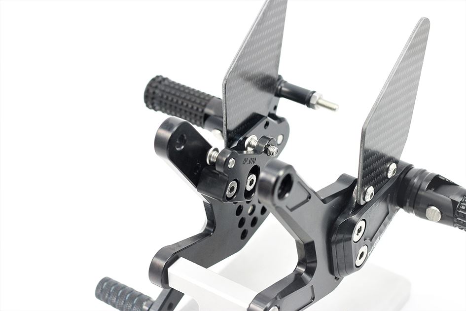 Race tested rear set, fully ergonomically adjustable in 8 positions and up to 18 mm.