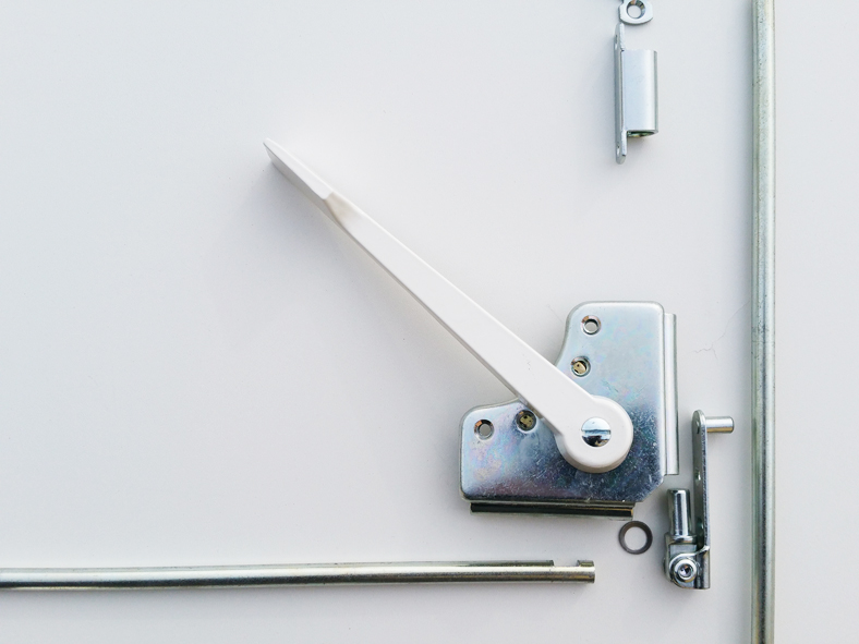 der Alu-Hebel ist weiß pulverbeschichtet