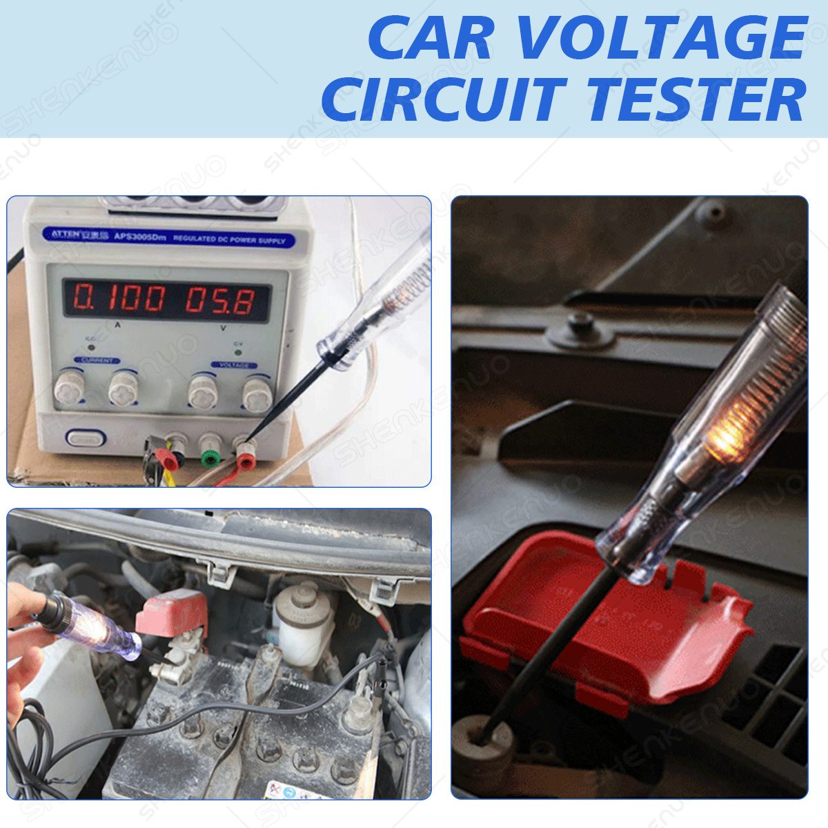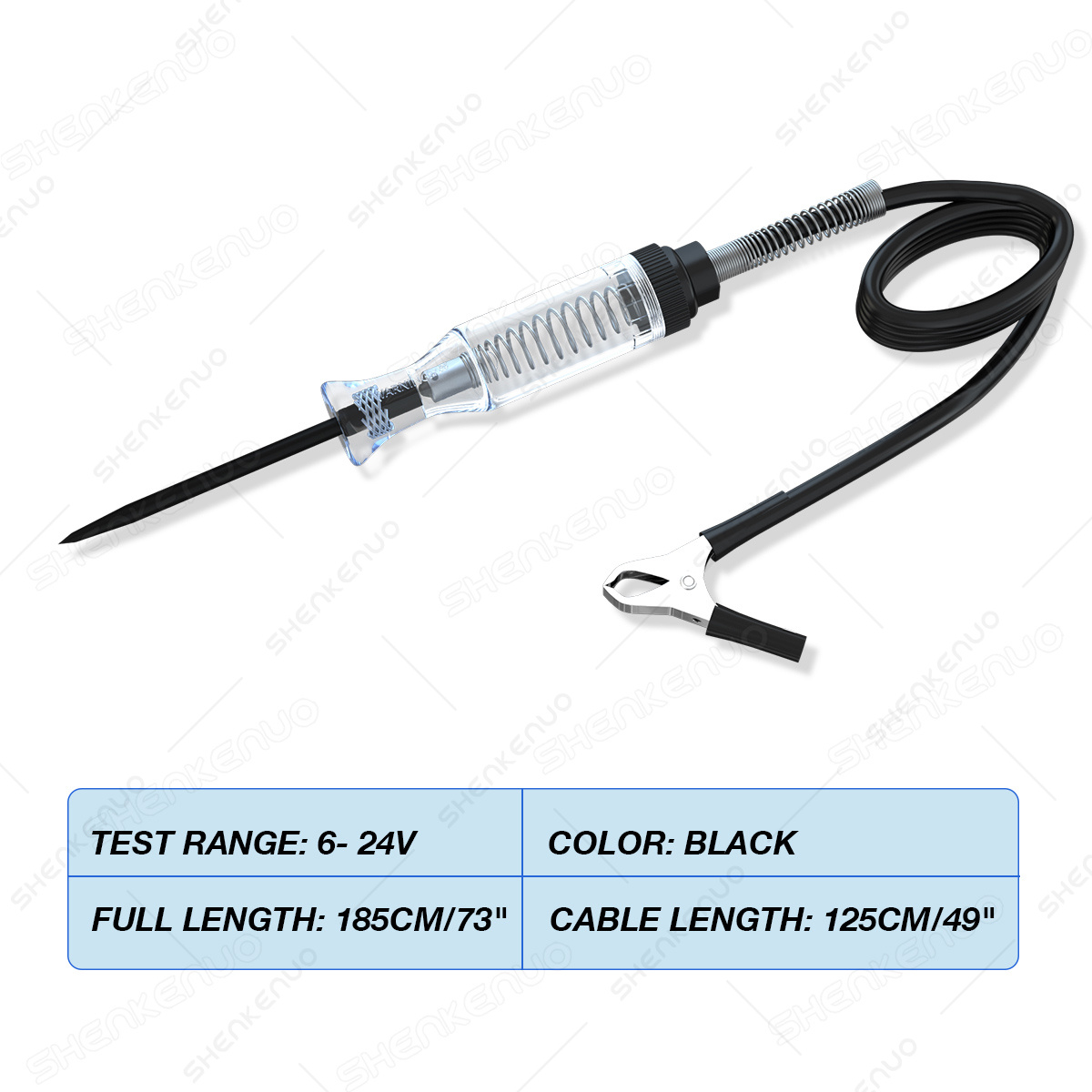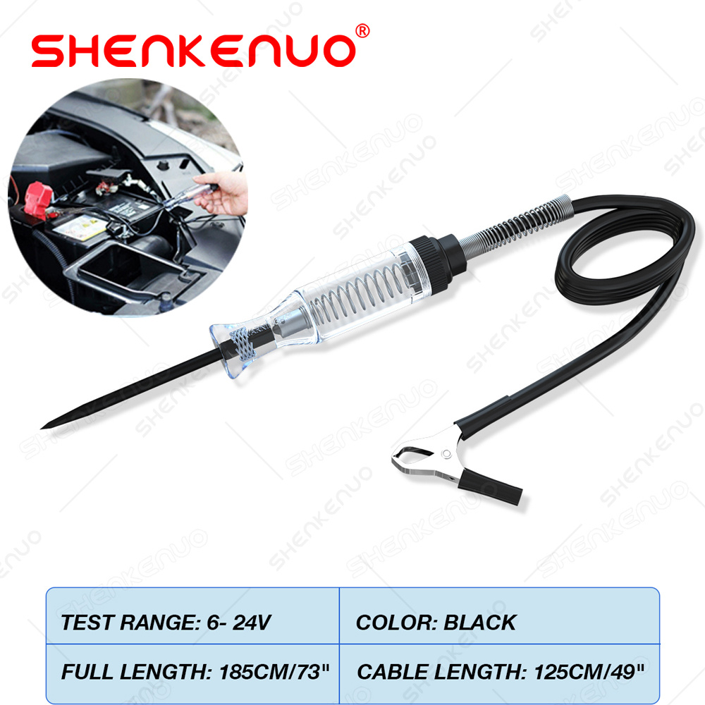 Voltage Range: 6V / 12V DC Total Length: 185CM Bulb: 3W Bulb (Replaceable) Package Included: 1 x Circuit Product Description: 1. Circuit Tester for 6V / 2. It can be used to detect ground and find shorts and 3. Just unscrew the test 4. Handle Brightly 5. Quickly check automotive connections, fuses, broken 6. It will save you time and 7. Portable-small size, Package Includes: