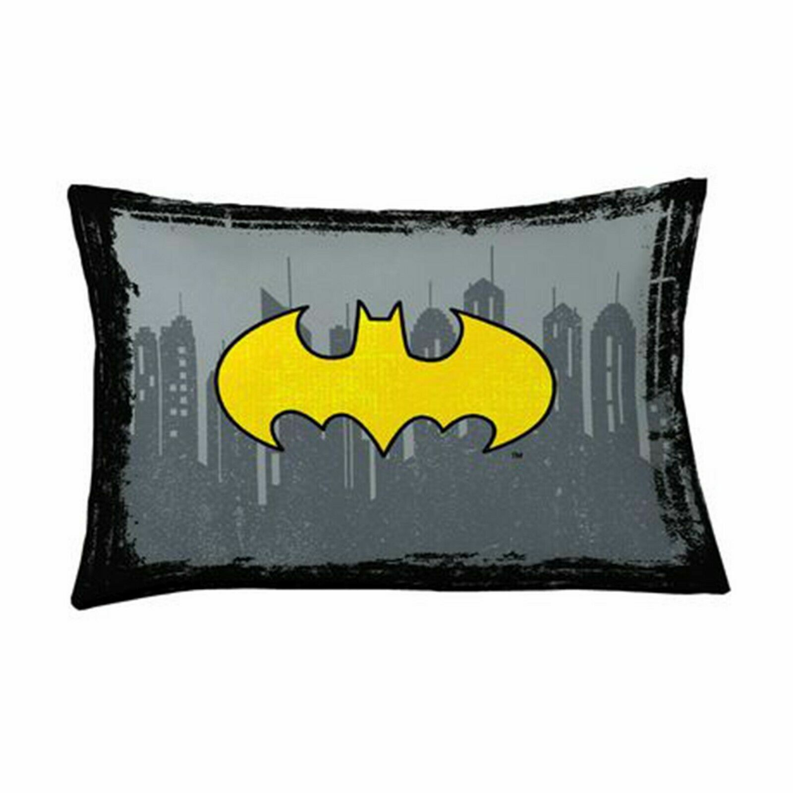 BAM! POW! Batman is moving through Gotham in this graphic and action-packed pillowcase. The pillowcase Batman in action, then flip it over to the reverse and see the bat signal against the Gotham skyline.