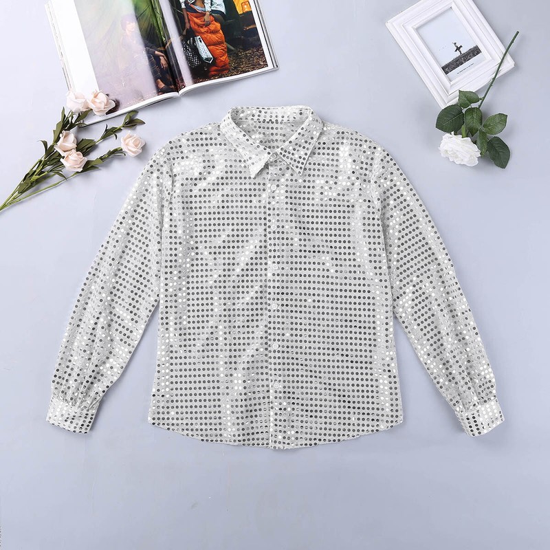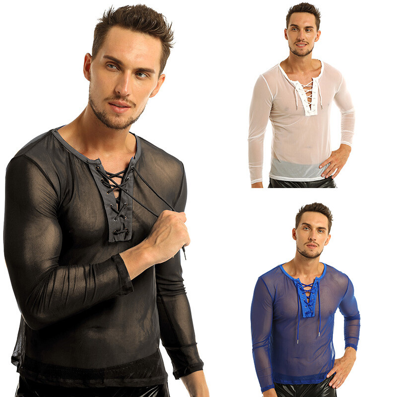Men’s clubwear shirt tops, see through mesh with sequins design.