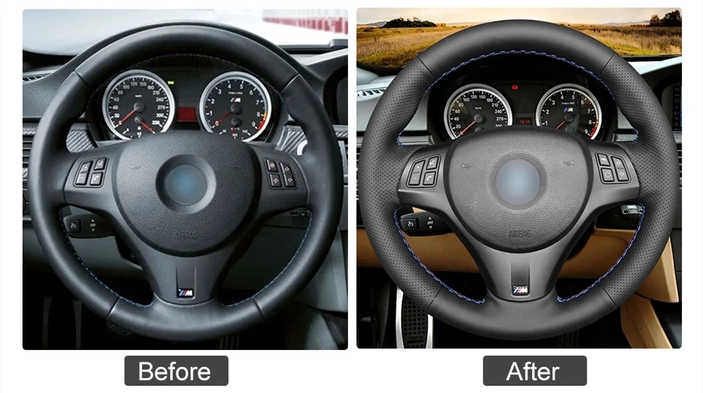 M3 E90 (Sedan) 2007-2013 / E92 (Coupe) 2007-2013 / E93 (Convertible) 2007-2013.(Only for reference, please compare your steering wheel carefully with the original steering wheel photo, if you can not make sure, please do not hesitate to contact us.)