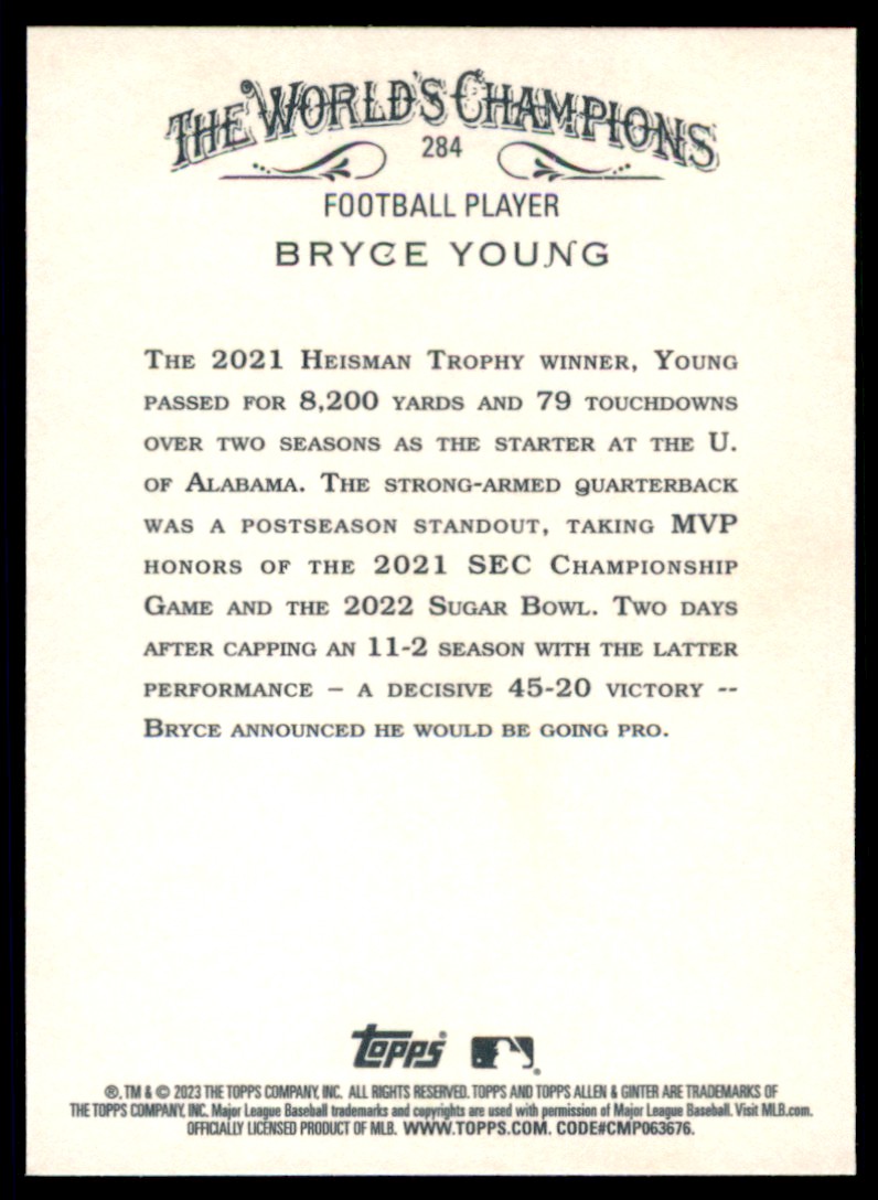 | 2023 Topps Allen & Ginter 284 Bryce Young |