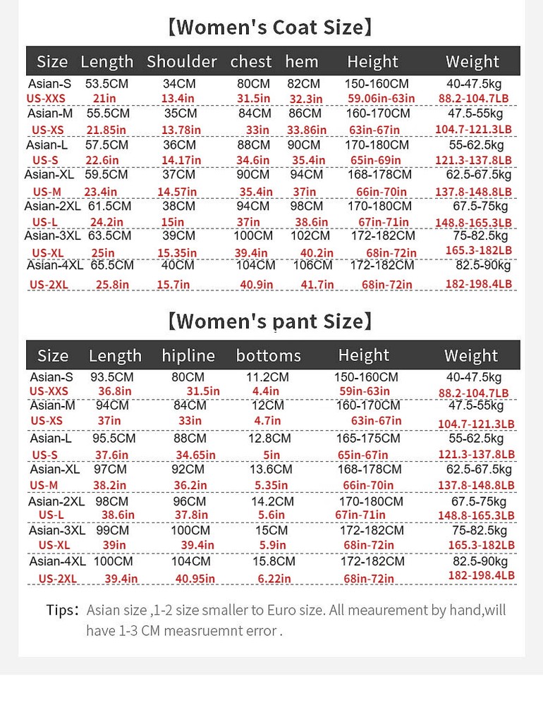 Our size chart shows Asian sizes!!! Asian sizes will be smaller than US sizes, please contact us if you have any questions, we will be happy to recommend your size, please confirm the size before ordering!