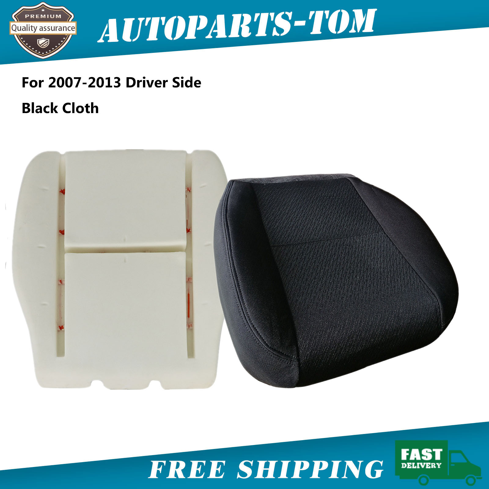 Driver Bottom Cloth Seat Cover Black & Foam Cushion For 2007-2013 Chevy Silverado GMC Sierra 1500 2500HD 3500HD & 2014 Classic Model