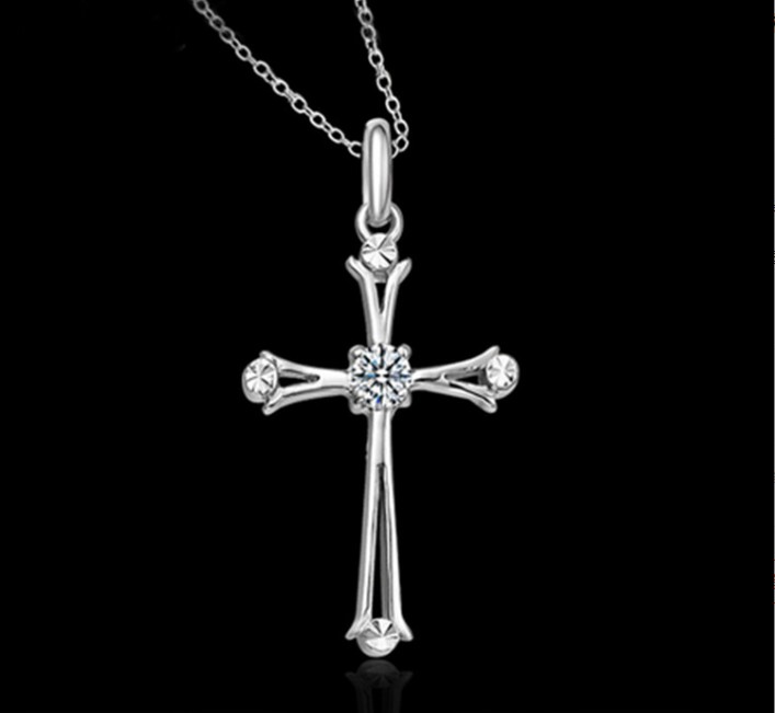 Designer Kreuz mit Zirkon Stein klein 1,5cm x 1cm aus feinem Edelstahl 316L mit halskette 45cm für Damen
