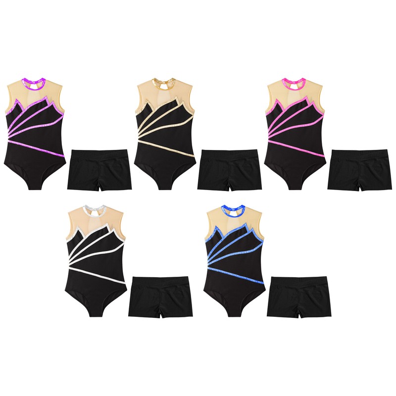 Kids Girls Circus Cosplay Performance Costume Short Puff Sleeves Mesh Tutu Dress Jumpsuit.