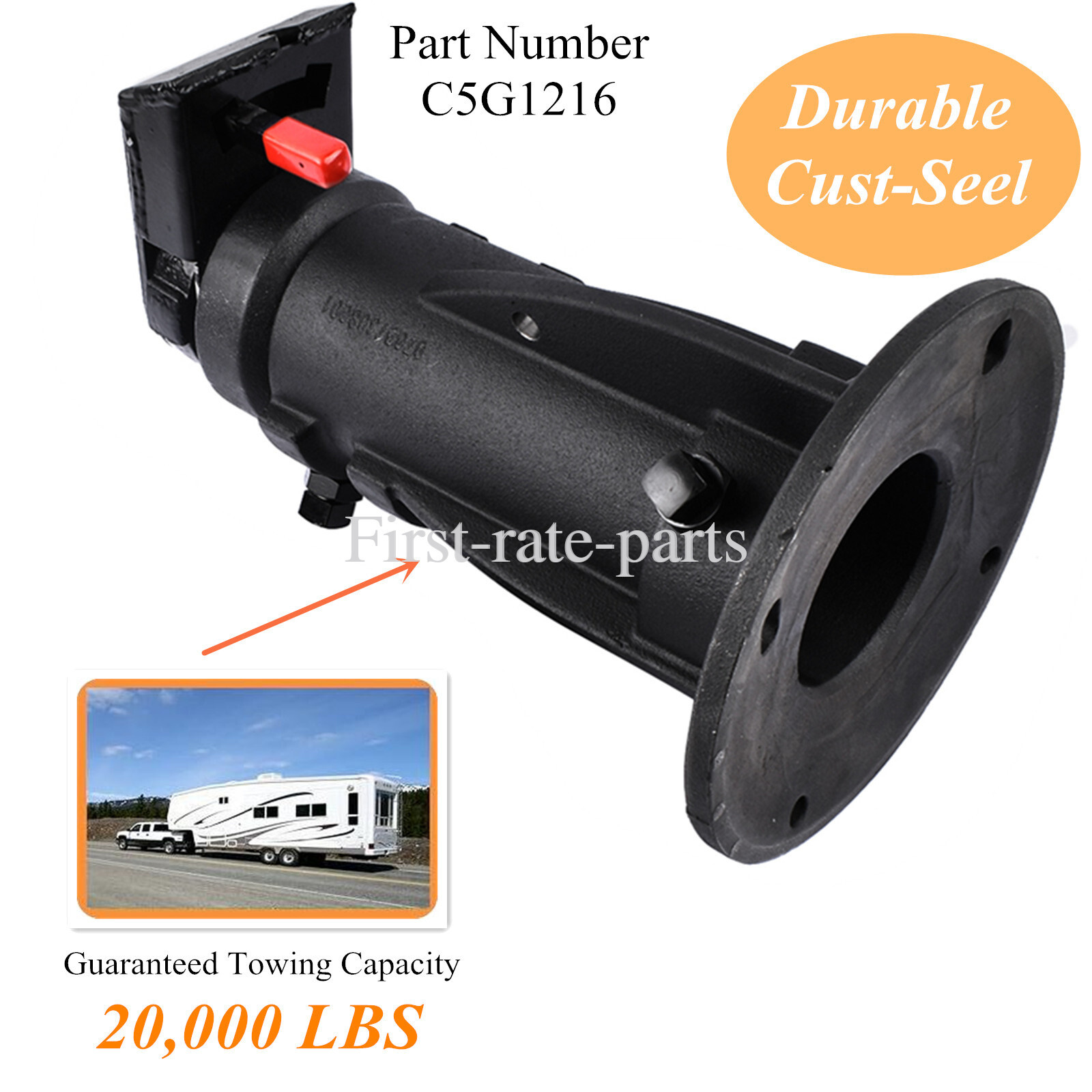 The adapter is to convert a kingpin of trailer to connect to a Gooseneck Hitch. The sliding collar with set screws allows it to be adjusted to any height between 12" and 16".
