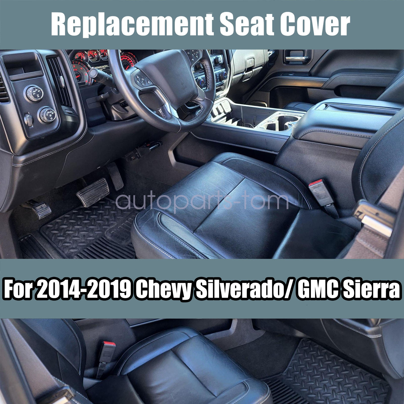 Driver Bottom Leather Seat Cover For 2014 2015 2016 2017 2018 2019 Chevy Silverado/ GMC Sierra 1500, 2500HD, 3500HD, LT, LS, LTZ, Z71 Hybrid Jet Black