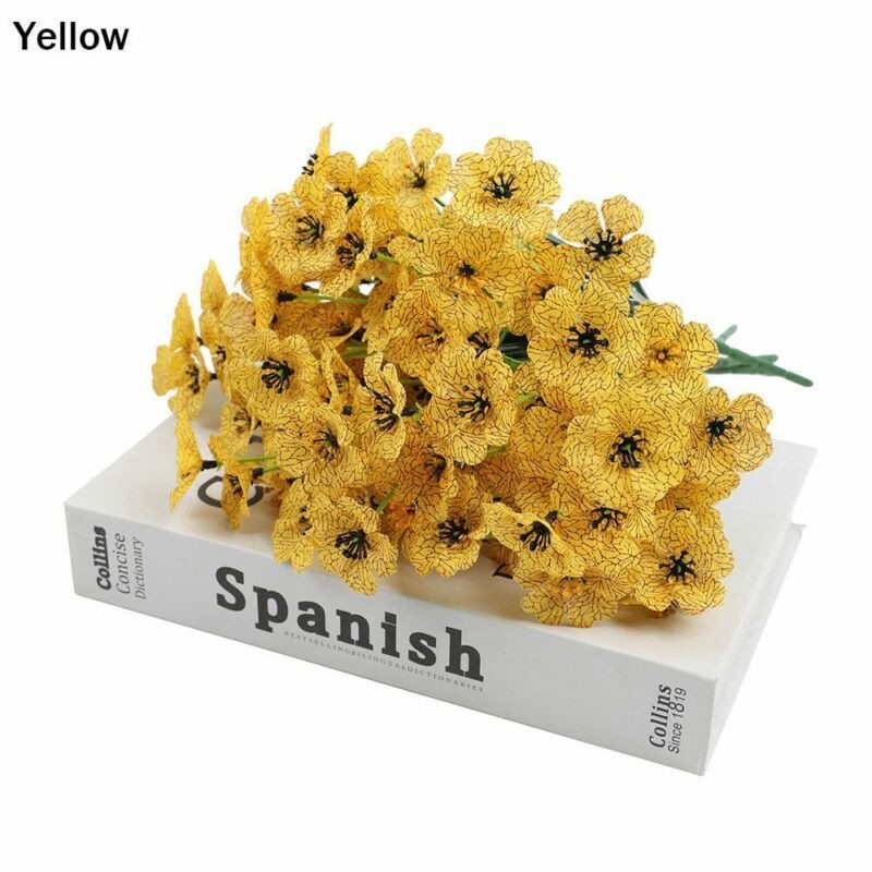 1.The flower head of the plastic fake flower uses silk screen silk cloth, the flower head has clear and beautiful lines, brighter colors and better color quality. The head of the new fake flower is very stable and does not fall off easily.
