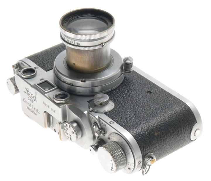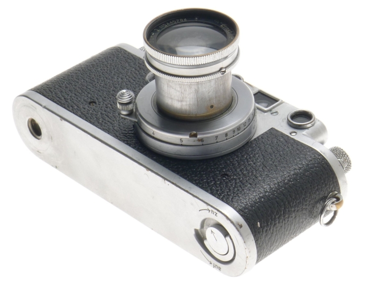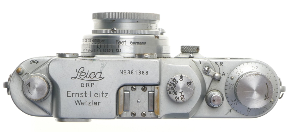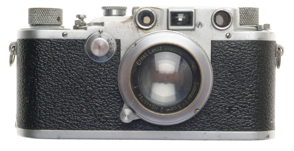 SUMMAR 1:2 f=5cm VINTAGE LENS IIIC LEICA 35mm FILM CAMERA RANGEFINDER TYPE USED. A well used working edition of a Leica IIIc body with serial number # 381 388 included is a matching SUMMAR 1:2 f=5cm collapsible uncoated chrome lens.