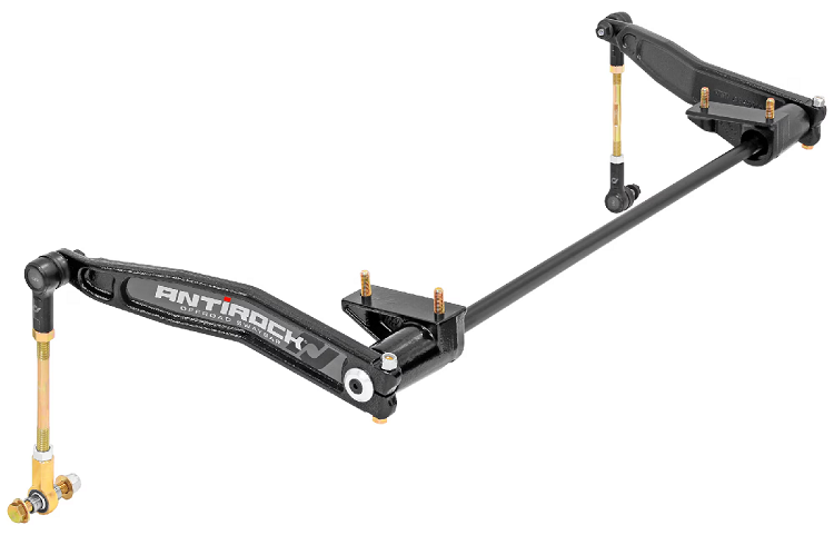 The Antirock front sway bar, when used in conjunction with a rear Antirock sway bar, provides a more stable feeling cabin and balanced performance of front and rear suspension in rugged off-road conditions. Antirocks gives the driver increased traction by balancing and distributing the weight and traction over all four tires.