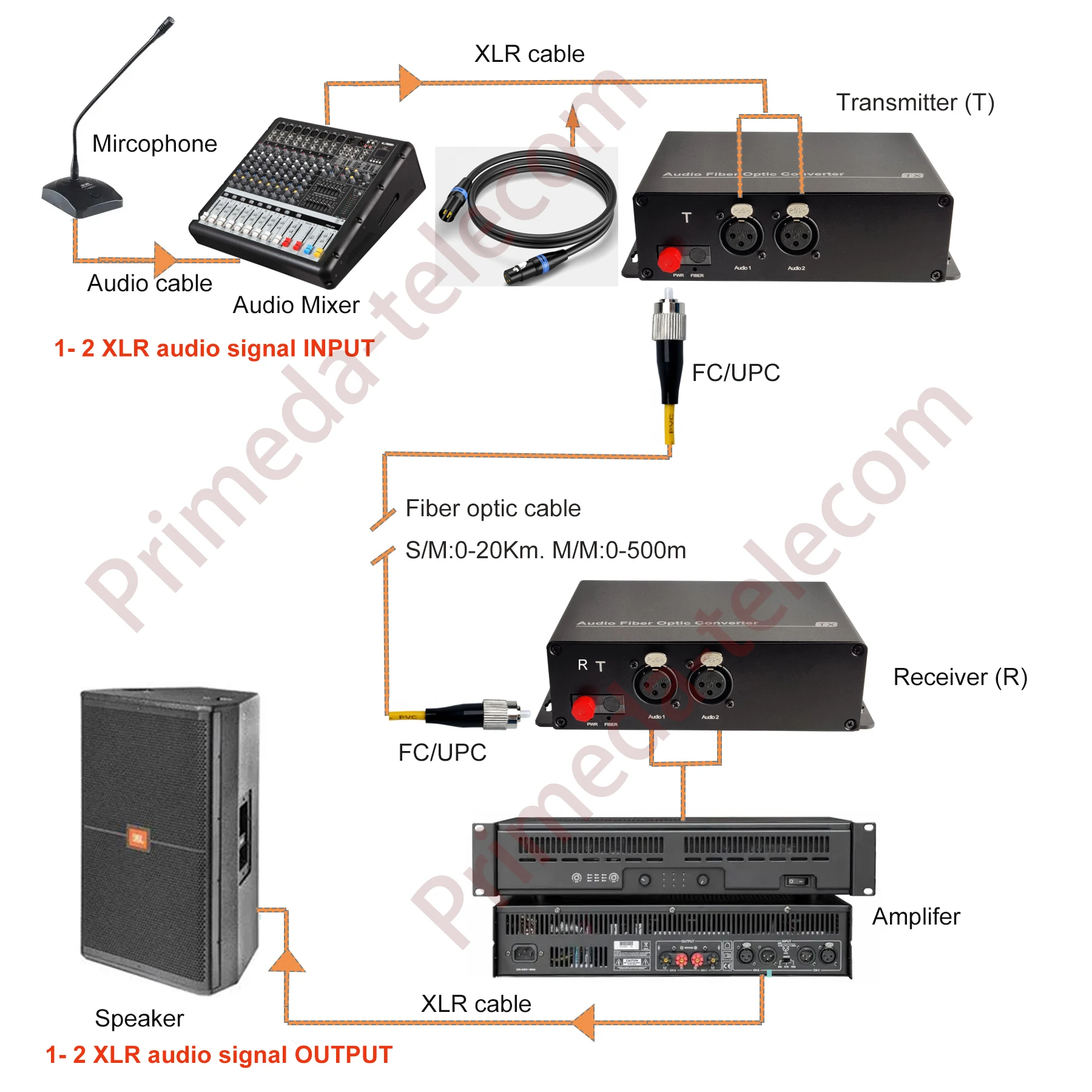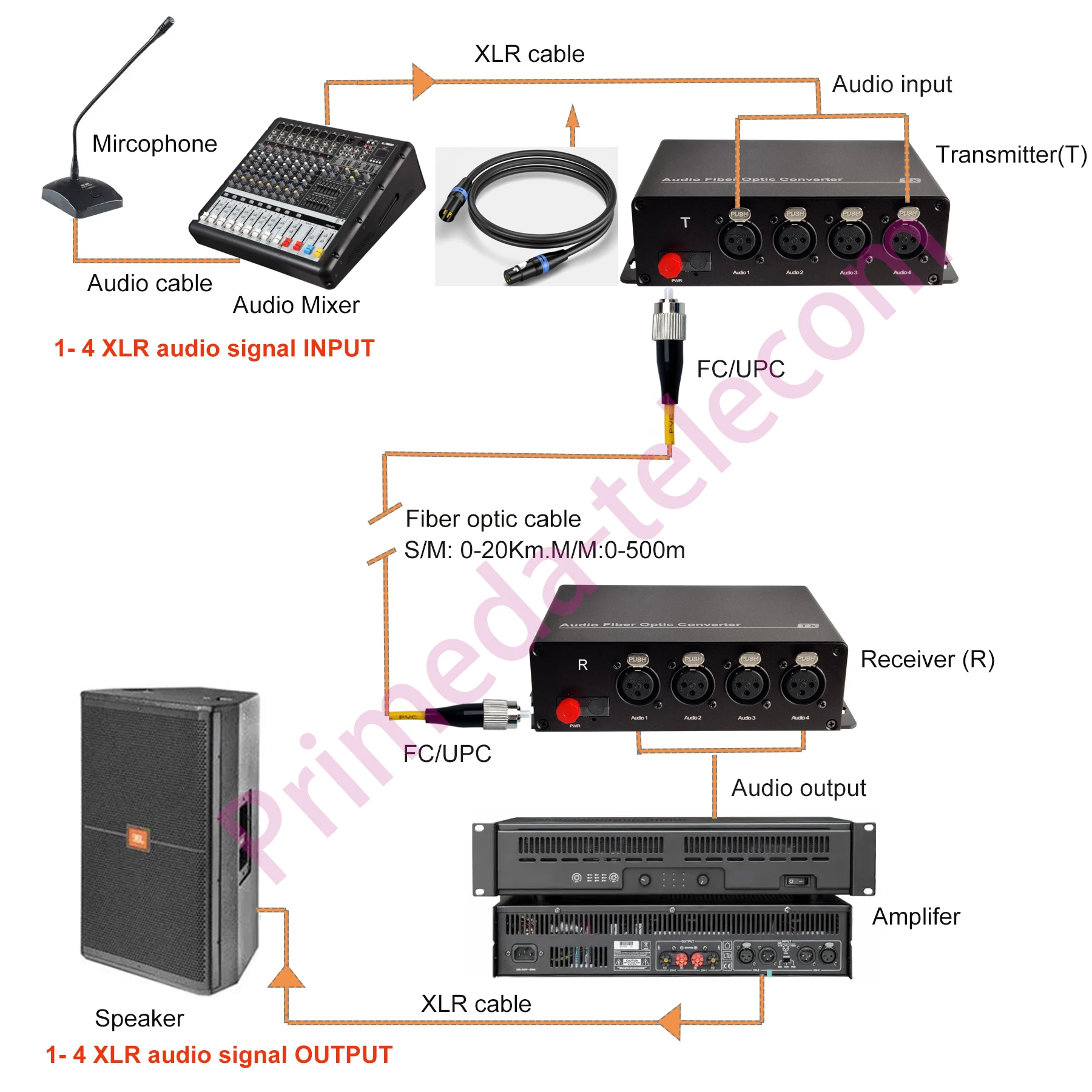 【Plug and Play】No need to set up ,Simply plug in an Optical FC port and XLR audio connectors at TX and RX sides, it will have crystal clear sound instantly.