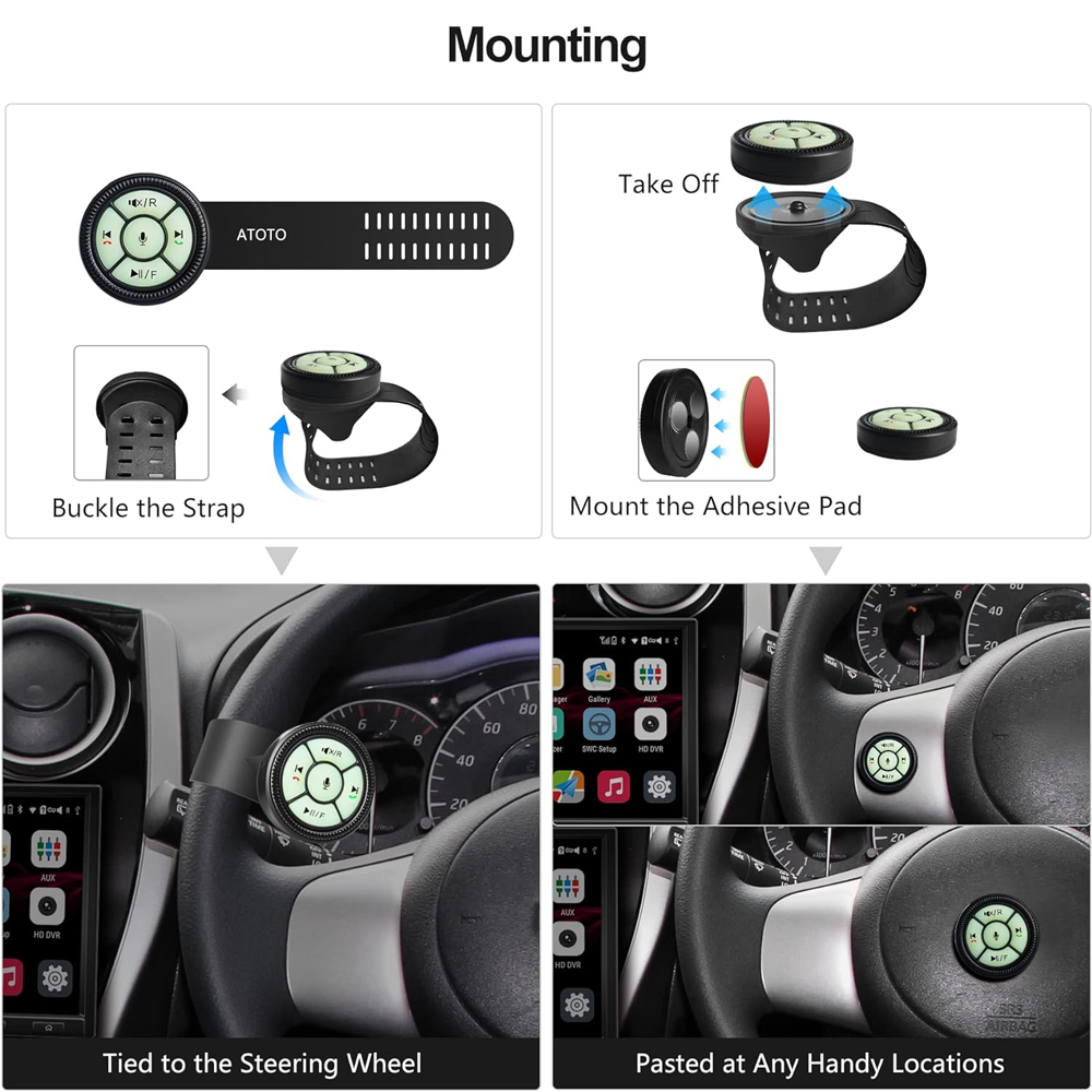 4. Facile da installare. Collega il ricevitore e il tutto è pronto. Avvolgilo attorno al volante con il cinturino o attaccalo in una posizione comoda. Tutti i pulsanti sono realizzati con materiali luminosi, molto utili per la guida notturna!