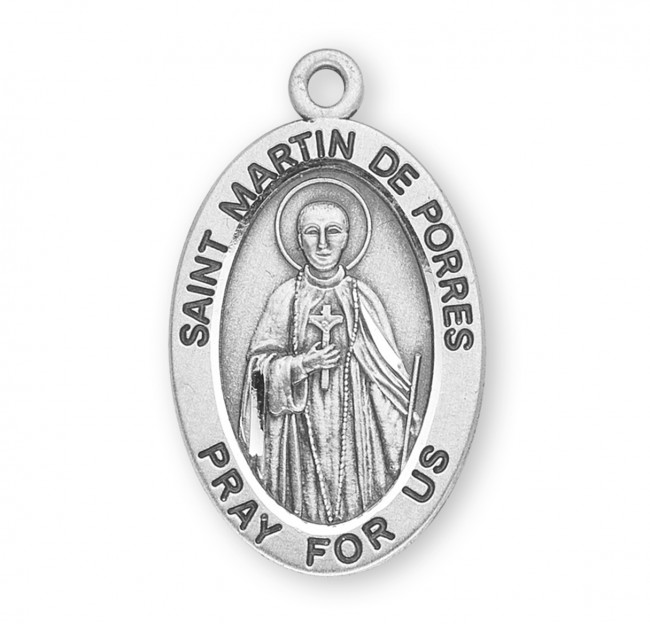 - Sterling silver oval medal of Saint Martin De Porres.