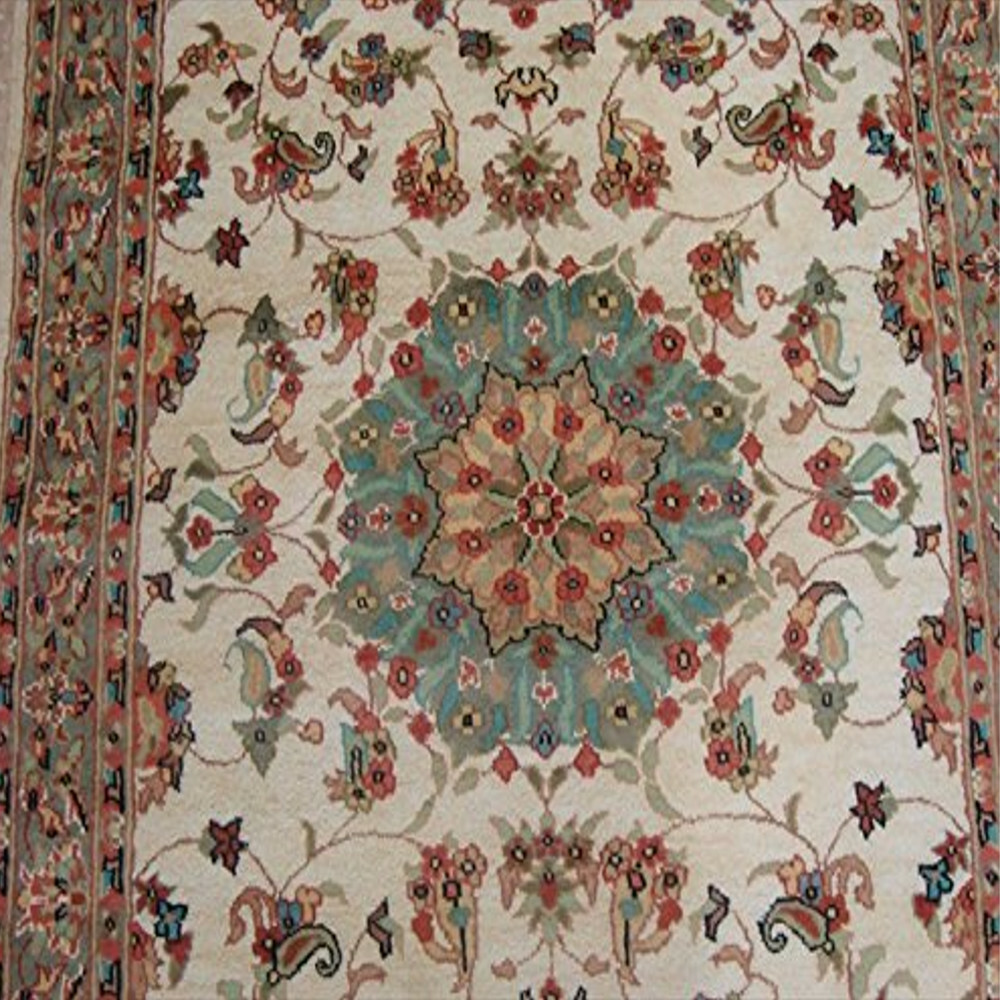 Chiraag Bunch Ivory Medallion Floral Rectangle Area Rug Hand Knotted Wool Silk Carpet (6 x 4)'. The rug to appear dull when viewed from one side, and shiny from the other side. Please view the picture at the bottom to see the bright side of the rug. This rug can help brighten up a room if you do not get much sunlight. Simply put the bright side facing the seating area and it will make the room appear surprisingly bright. Gorgeous flower med design with Ivory and multi-color, sure to catch your attention. This rug is easily compatible with most home decor. Blended color schemes match well with all styles of furniture and art. Give your home an elegant touch with this area rug. Great for any decor, adds texture to the floor and complements any decor. 100% Genuine Hand Knotted-Rug not hand tufted.