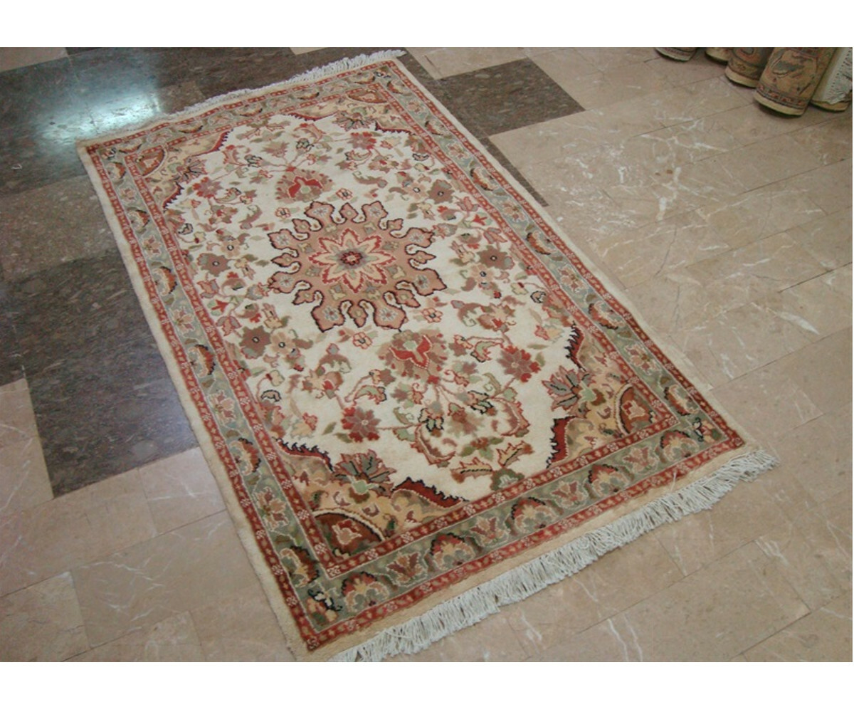 Rectangle Area Rug Ivory Medallion Flowers Hand Knotted Wool Silk Carpet (5 x 3)'. For the perfect combination of unique, beautiful style and high-quality durability, the attention to detail on these beautiful contemporary rugs is noticed as soon as you lay eyes on the carpet. The rug to appear dull when viewed from one side, and shiny from the other side. Please view the picture at the bottom to see the bright side of the rug. This rug can help brighten up a room if you do not get much sunlight. Simply put the bright side facing the seating area and it will make the room appear surprisingly bright Give your home an elegant touch with this amazing rug carpet.