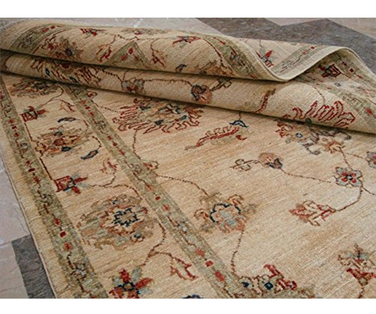 Wonderful Chobi Zeiglar Mahal Brand New Rectangle Rug Ghazni Wool Hand Knotted Carpet (6.8 x 4.5)'. Chobi rugs are traditionally from the border region of Pakistan and Afghanistan. The word "chobi" itself is Farsi for "color like wood." Our Chobis tend to have large geometric floral patterns and they are all hand knotted of hand spun vegetable dyed ghazni wool. The dyes are made entirely from hand gathered fruits, vegetables, roots, tree barks and dried fruit shells, making Chobis the most labor-intensive of all of our tribal carpets. Natural Dye Chobis are renowned for their lanolin-rich luster and stunning natural coloring. Their colors range from soft muted tans and browns to rich coppers, deep maroons, and sage greens. Our natural dyeing techniques have been refined over the years to ensure a natural dye that is steadfast and long-lasting. Give your home an elegant touch with this rug. Great for any decor, adds texture to the floor and complements any decor. 100% Genuine Hand Knotted-Rug not hand tufted.