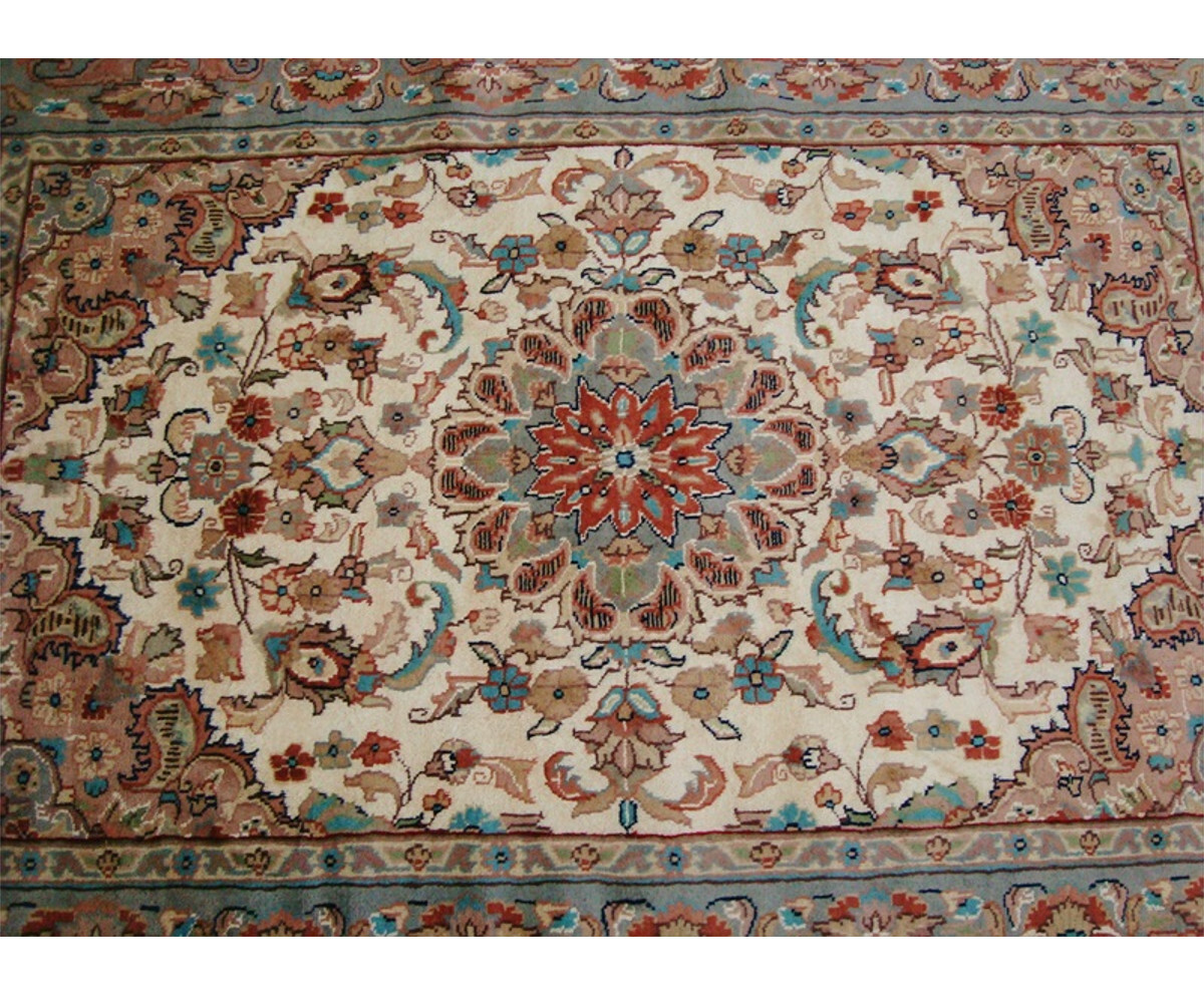 Wow Amazing Ivory Medallion Flower Rectangle Area Rug Hand Knotted Wool Silk Carpet (6 x 4)'. The rug to appear dull when viewed from one side, and shiny from the other side. Please view the picture at the bottom to see the bright side of the rug. This rug can help brighten up a room if you do not get much sunlight. Simply put the bright side facing the seating area and it will make the room appear surprisingly bright. Rectangle shape with excellent floral pattern. Ideal choice for the modern family room. Blended color schemes match well with all styles of furniture and art. Give your home an elegant touch with this amazing rug carpet. Great for any decor, adds texture to the floor and complements any decor. 100% Genuine Hand Knotted-Rug not hand tufted.