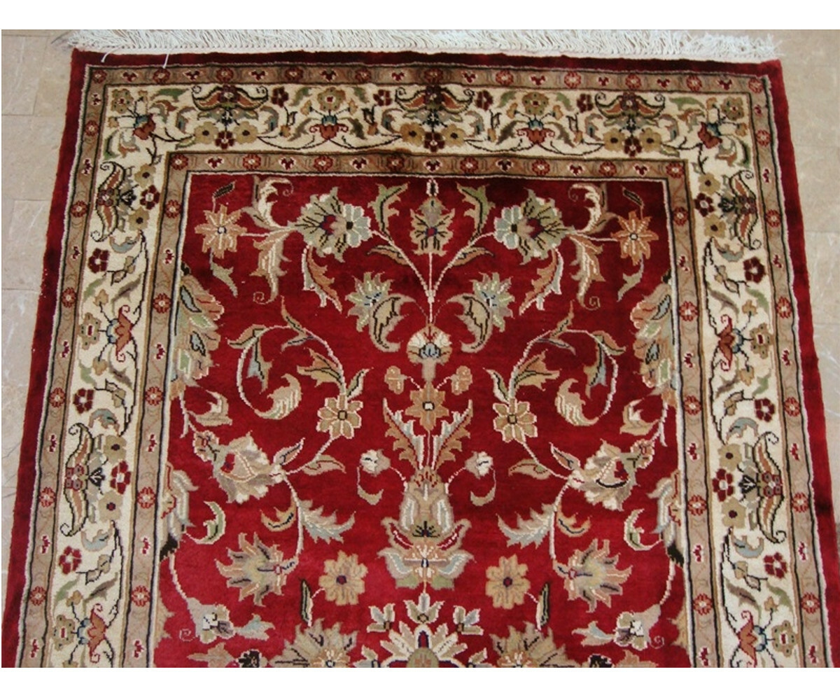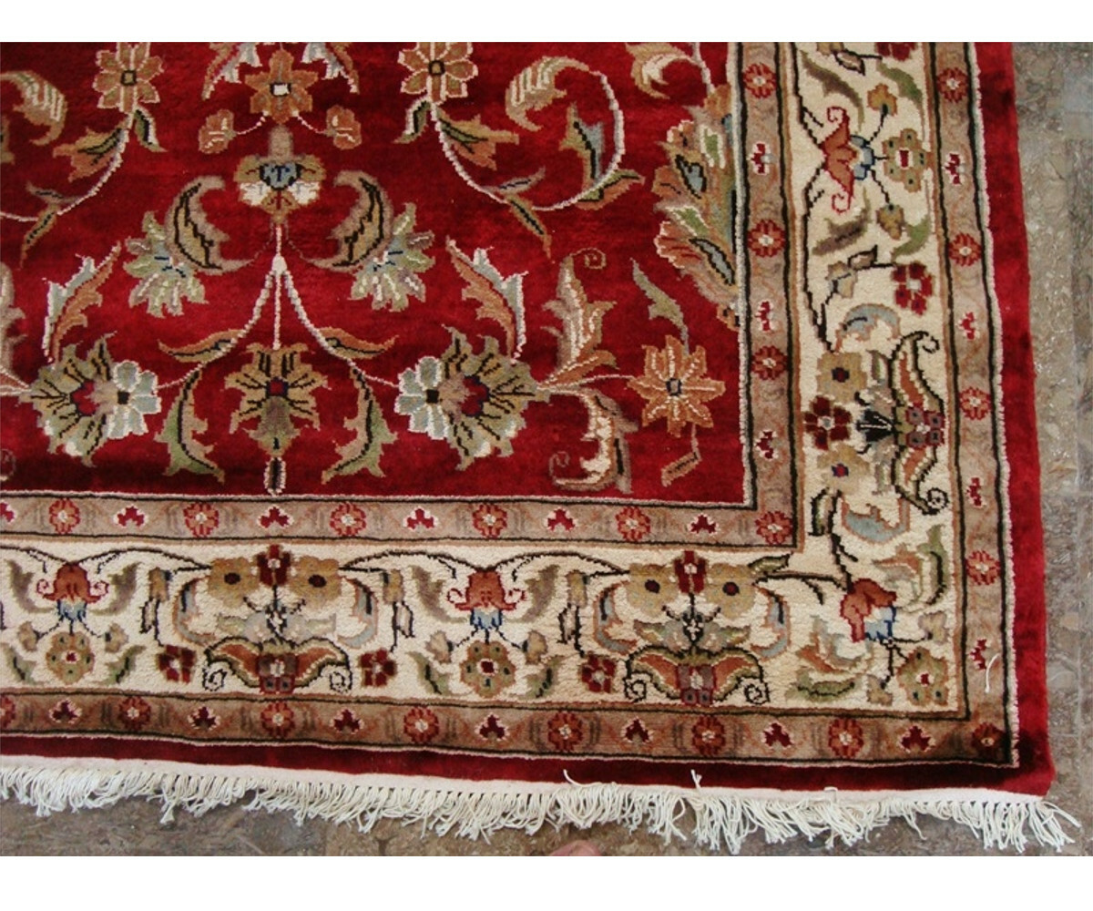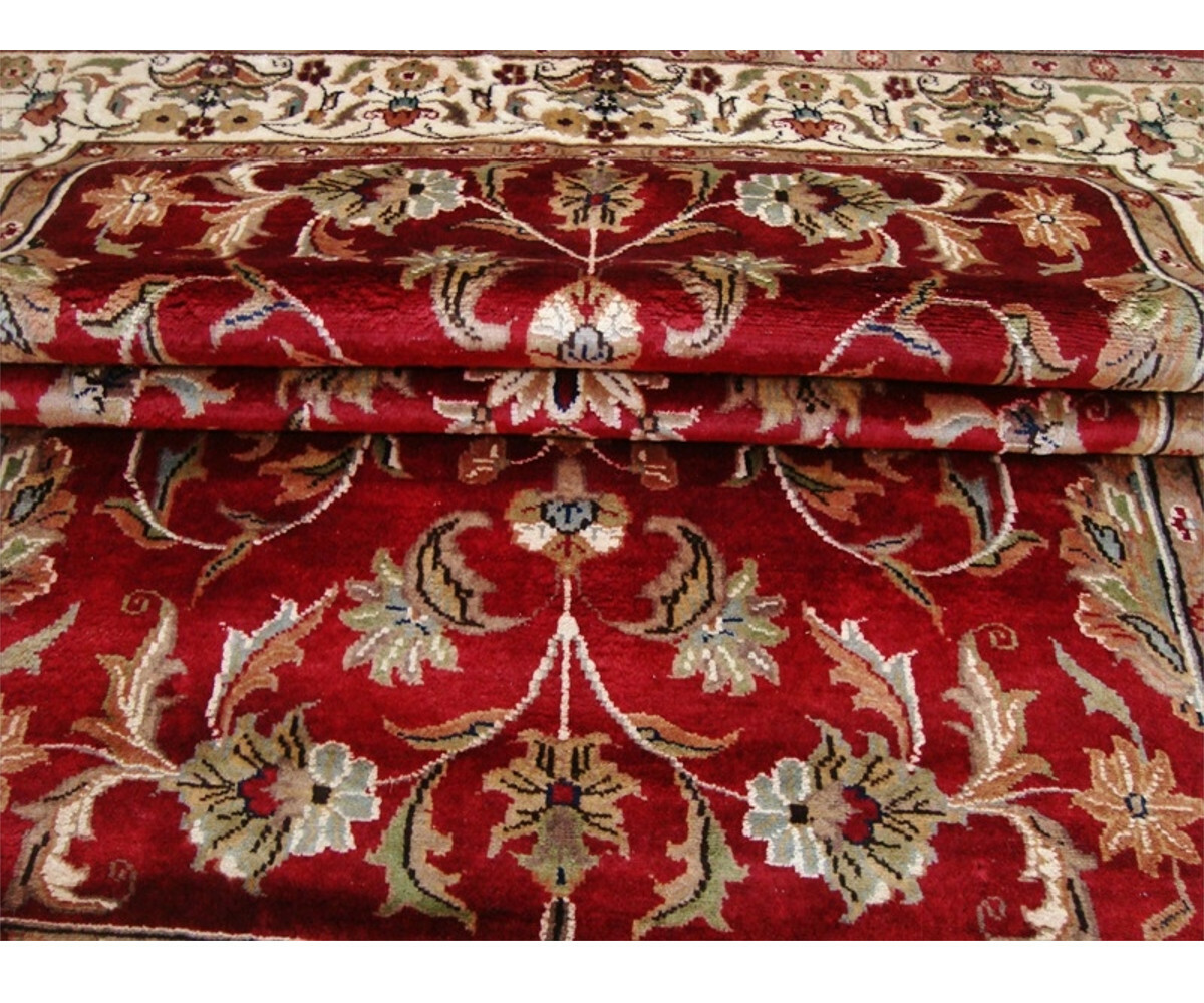 Wow Red Ivory Flowers Allover Hand Knotted Area Rug Wool Silk Carpet (6 x 4)'. For the perfect combination of unique, beautiful style and high-quality durability, the attention to detail on these beautiful contemporary rugs is noticed as soon as you lay eyes on the carpet. They also look befitting in many homes to a wide range of applications. These have become very popular because of the pleasant colors and reasonable prices. This durable carpet is perfectly styled for home furnishings. The rug to appear dull when viewed from one side, and shiny from the other side. Please view the picture at the bottom to see the bright side of the rug. This rug can help brighten up a room if you do not get much sunlight. Simply put the bright side facing the seating area and it will make the room appear surprisingly bright. This provides excellent, stylish design which makes your room gorgeous. Vacuum regularly to clean the dust and crumbs from settling into the roots of the fibers. 100% genuine hand knotted-rug not hand tufted like other sellers.