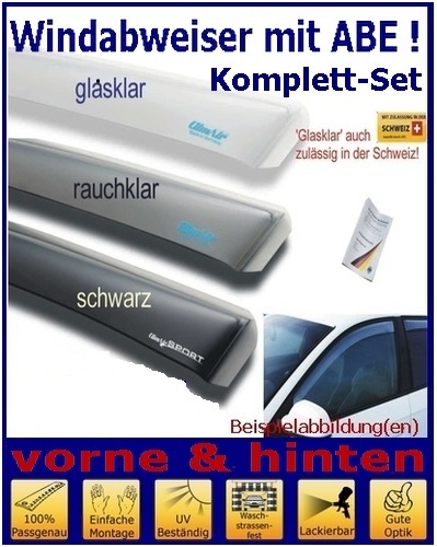 - Mit ABE für die vorderen Windabweiser (eintragungs- u. abnahmefrei in der EU), für die hinteren Windabweiser werden keinerlei Papiere benötigt