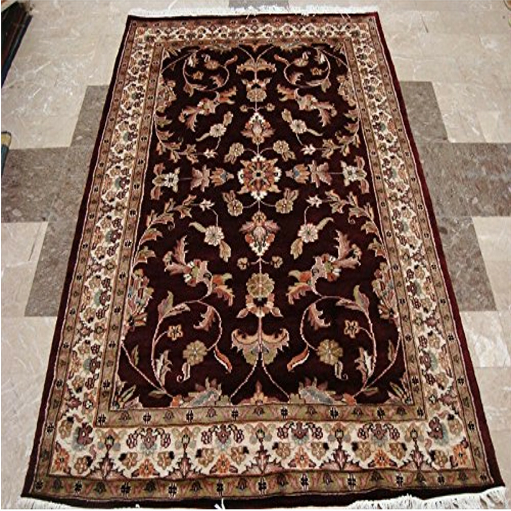 Mid Night Dark Red Love Flowers Rectangle Area Rug Hand Knotted Wool Silk Carpet (6 x 4)'. For the perfect combination of unique, beautiful style and high-quality durability, the attention to detail on these beautiful contemporary rugs is noticed as soon as you lay eyes on the carpet. They also look befitting in many homes to a wide range of applications. These have become very popular because of the pleasant colors and reasonable prices. This durable carpet is perfectly styled for home furnishings. The rug to appear dull when viewed from one side, and shiny from the other side. Please view the picture at the bottom to see the bright side of the rug. This rug can help brighten up a room if you do not get much sunlight. Simply put the bright side facing the seating area and it will make the room appear surprisingly bright. This provides excellent, stylish design which makes your room gorgeous. Vacuum regularly to clean the dust and crumbs from settling into the roots of the fibers. 100% genuine hand knotted-rug not hand tufted.