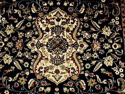 Mid Night Blue Ivory Exclusive Hand Knotted Oriental Rug Wool Silk Carpet (8 x 5)'. In this rug, the artist has made up a flowers in the Garden rug style. You can see many flowers hand knotted around the border of the whole rug. The rug to appear dull when viewed from one side, and shiny from the other side. Please view the picture at the bottom to see the bright side of the rug. This rug can help brighten up a room if you do not get much sunlight. Simply put the bright side facing the seating area and it will make the room appear surprisingly bright. Stay comfortable and feel free all year long with this rug. Give your home an elegant touch with this rug. Great for any decor, adds texture to the floor and complements any decor. 100% Genuine Hand Knotted-Rug not hand tufted.