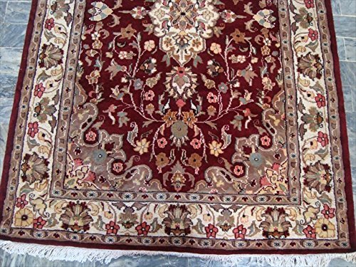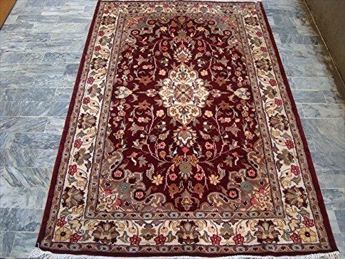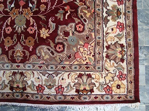 Shahe-Taj Ruby Red Exclusive Area Rug Hand Knotted Wool Silk Carpet (6 x 4)'. Exclusive Design Rare Shah-E-Taaj Ruby Red Hand Knotted Rug / Wall Tepestry. For the perfect combination of unique, beautiful style and high-quality durability, the attention to detail on these beautiful contemporary rugs is noticed as soon as you lay eyes on the carpet. They also look befitting in many homes to a wide range of applications. These have become very popular because of the pleasant colors and reasonable prices. This durable carpet is perfectly styled for home furnishings. The rug to appear dull when viewed from one side, and shiny from the other side. Please view the picture at the bottom to see the bright side of the rug. This rug can help brighten up a room if you do not get much sunlight. Simply put the bright side facing the seating area and it will make the room appear surprisingly bright. This provides excellent, stylish design which makes your room gorgeous. Vacuum regularly to clean the dust and crumbs from settling into the roots of the fibers. Customer satisfaction is our top priority. 100% genuine hand knotted-rug not hand tufted.