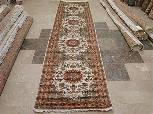 Gorgeous Ivory Floral Medallion Wool Silk Hand Knotted Soft Hall Way Runner Rug (10.1 X 2.6)'. For the perfect combination of unique, beautiful style and high-quality durability, the attention to detail on these beautiful contemporary rugs is noticed as soon as you lay eyes on the carpet. The rug appears dull when viewed from one side, and shiny from the other side. Please view the picture at the bottom to see the bright side of the rug. This rug can help brighten up a room if you do not get much sunlight. Simply put the bright side facing the seating area and it will make the room appear surprisingly bright. Gorgeous Floral design with Ivory touch will surely catch your attention. Blended color schemes match well with all styles of furniture and art. Rectangle shape with excellent floral pattern. Ideal choice for the modern family room. Blended color schemes match well with all styles of furniture and art. Give your home an elegant touch with this amazing rug carpet. Great for any decor, adds texture to the floor and complements any decor.