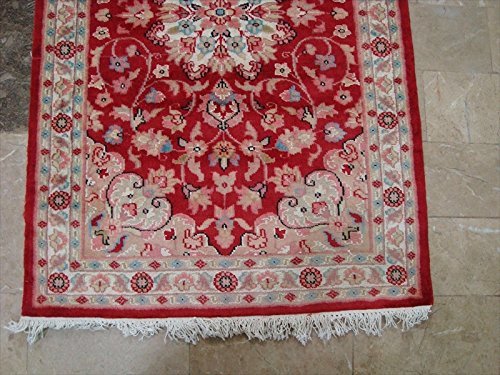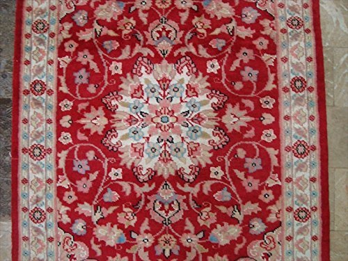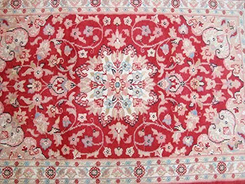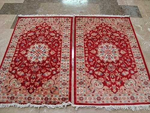Awesome Love Red Floral Hand Knotted Oriental Rug Wool Silk Carpet Pair (4 x 2.6)'. Add a classic look in your home with this rug. The rug to appear dull when viewed from one side, and shiny from the other side. Please view the picture at the bottom to see the bright side of the rug. This rug can help brighten up a room if you do not get much sunlight. Simply put the bright side facing the seating area and it will make the room appear surprisingly bright. Attractive Floral Kasha design with multi-color, sure to catch your attention. This rug is easily compatible with most home decor. Blended color schemes match well with all styles of furniture and art. Give your home an elegant touch with this area rug. Great for any decor, adds texture to the floor and complements any decor. Measures approximately 4.1 x 2.6 Feet (125 X 77 cm) and 4.1 x 2.7 Feet (125 x 77 cm). 100% Genuine Hand Knotted-Rug not hand tufted like other sellers.