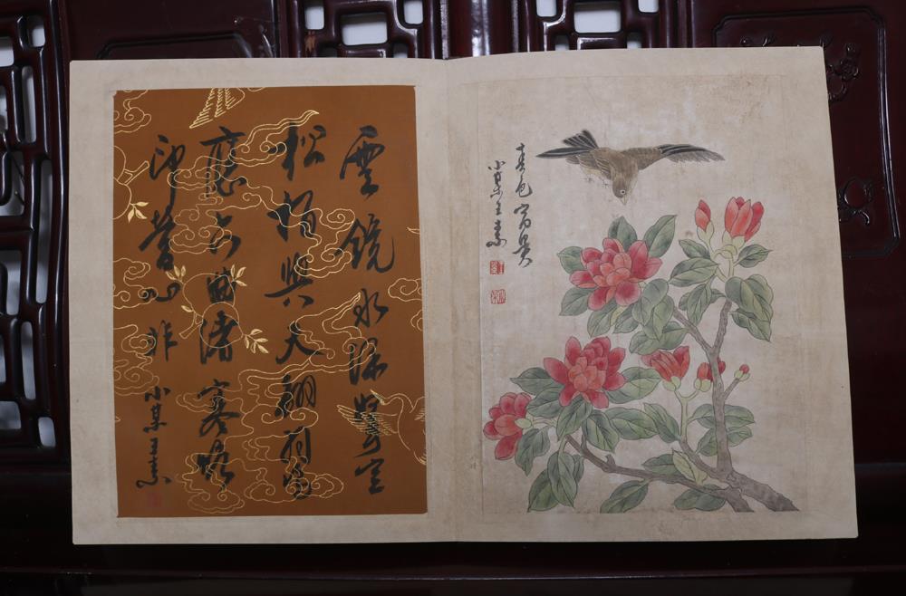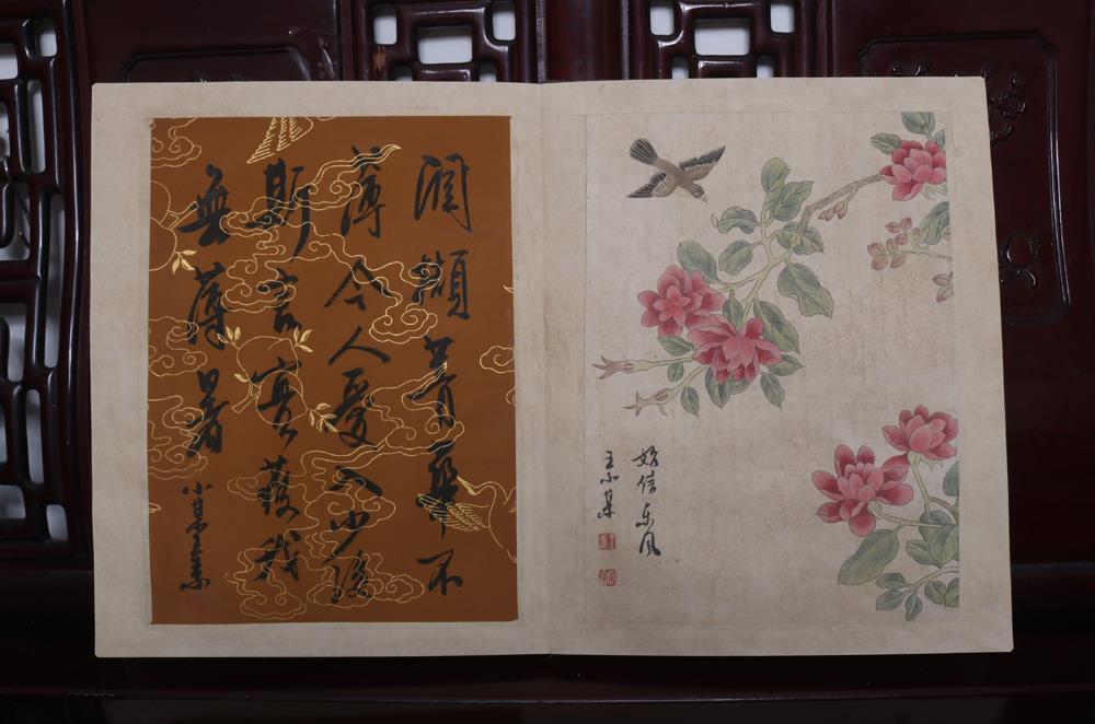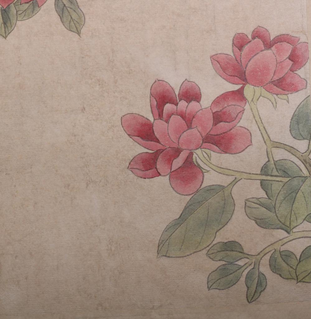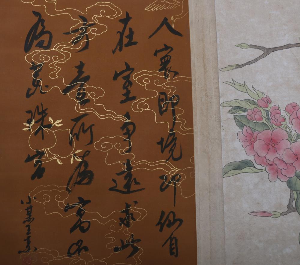 Item: Up for auction is a fine Chinese scroll album, peach and a poem for each one