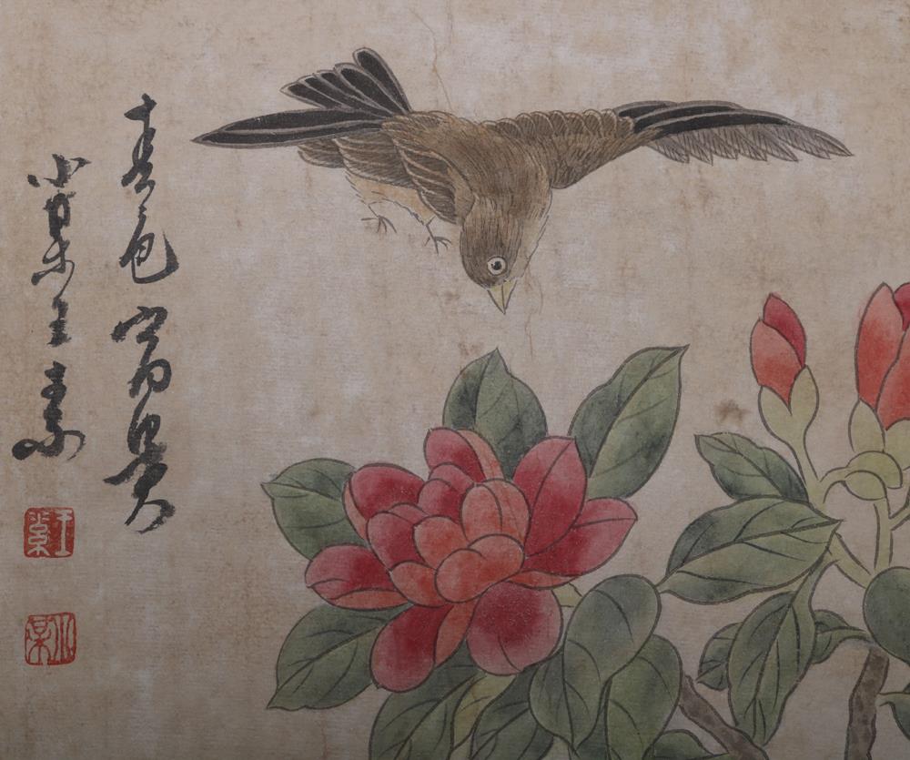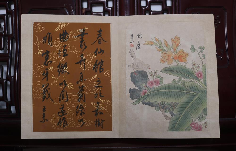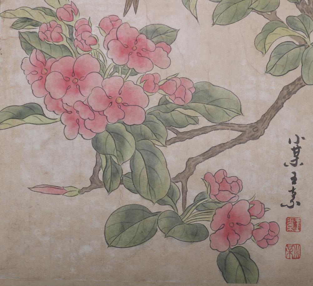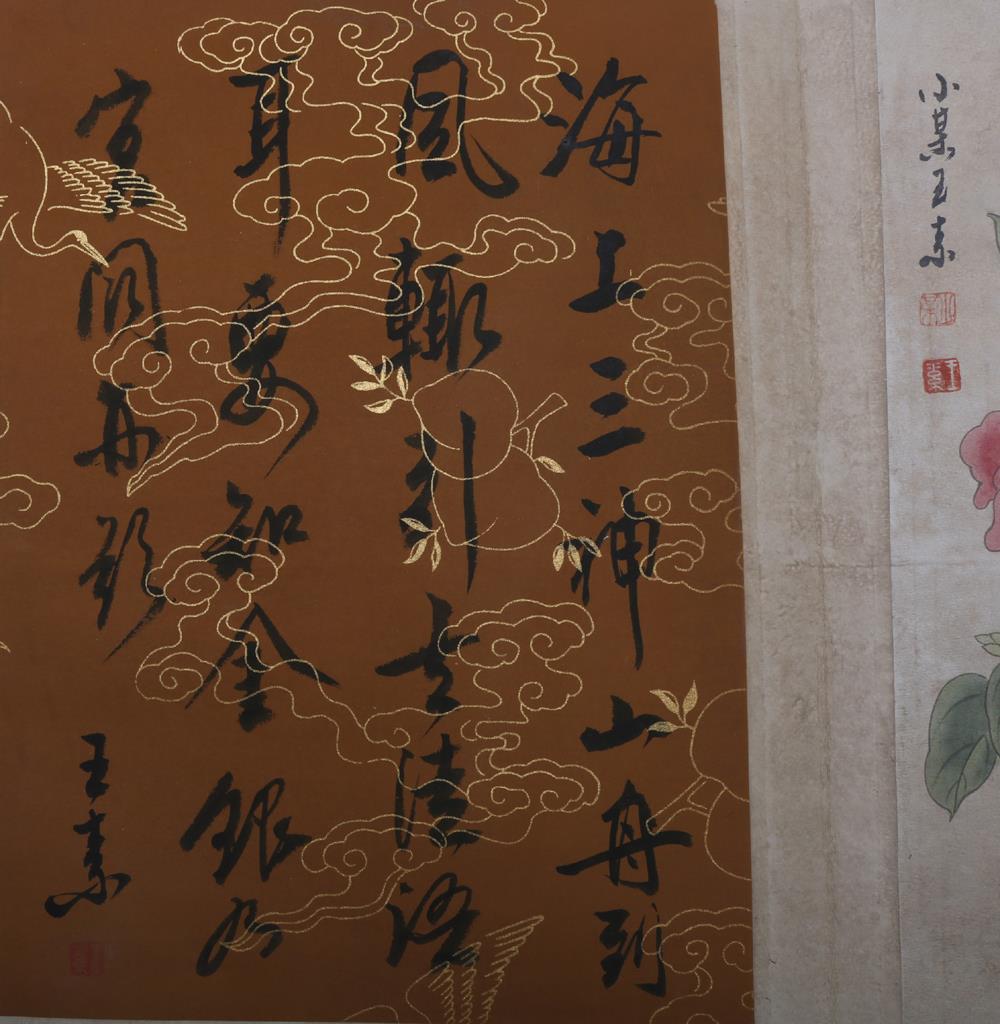 Item: Up for auction is a fine Chinese scroll album, peach and a poem for each one