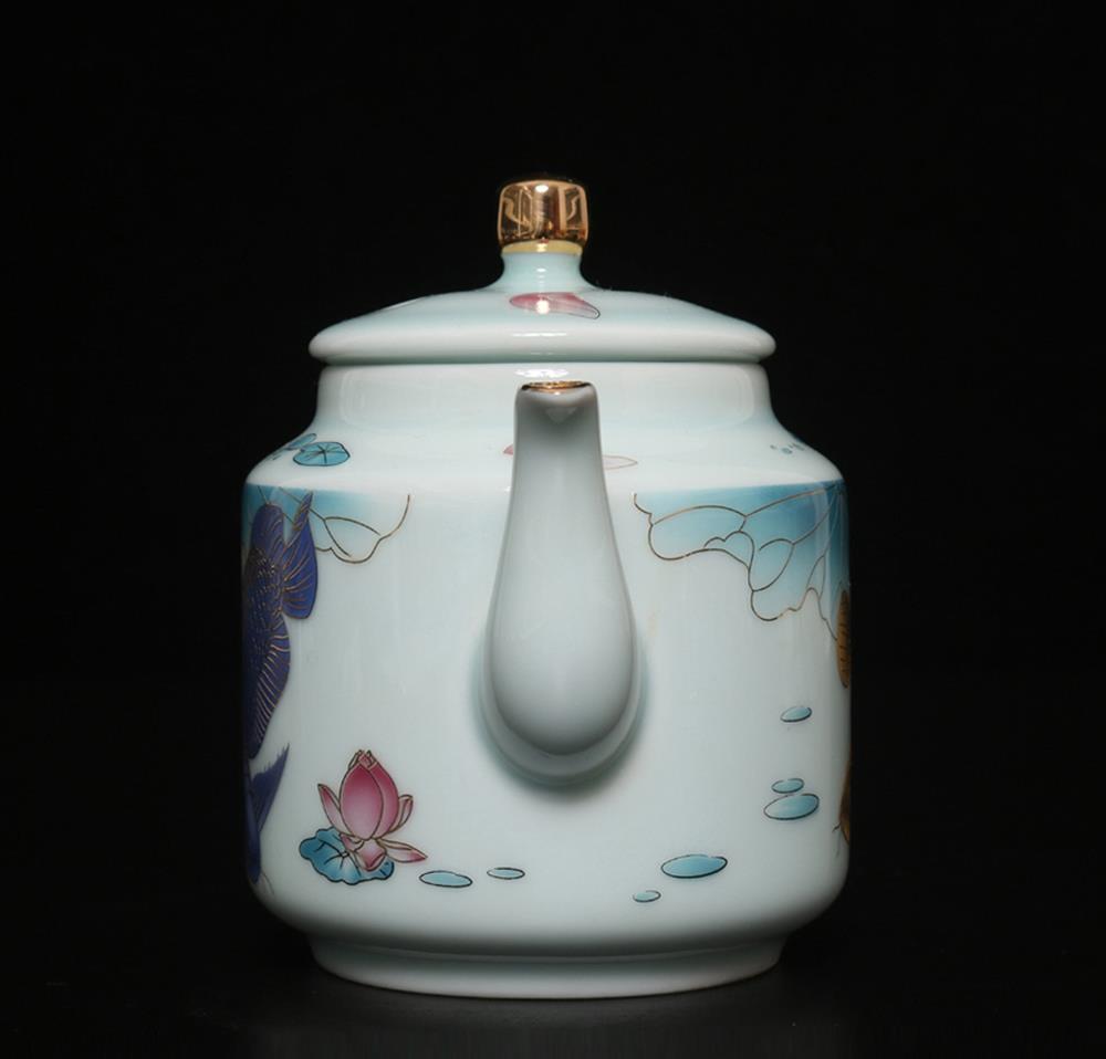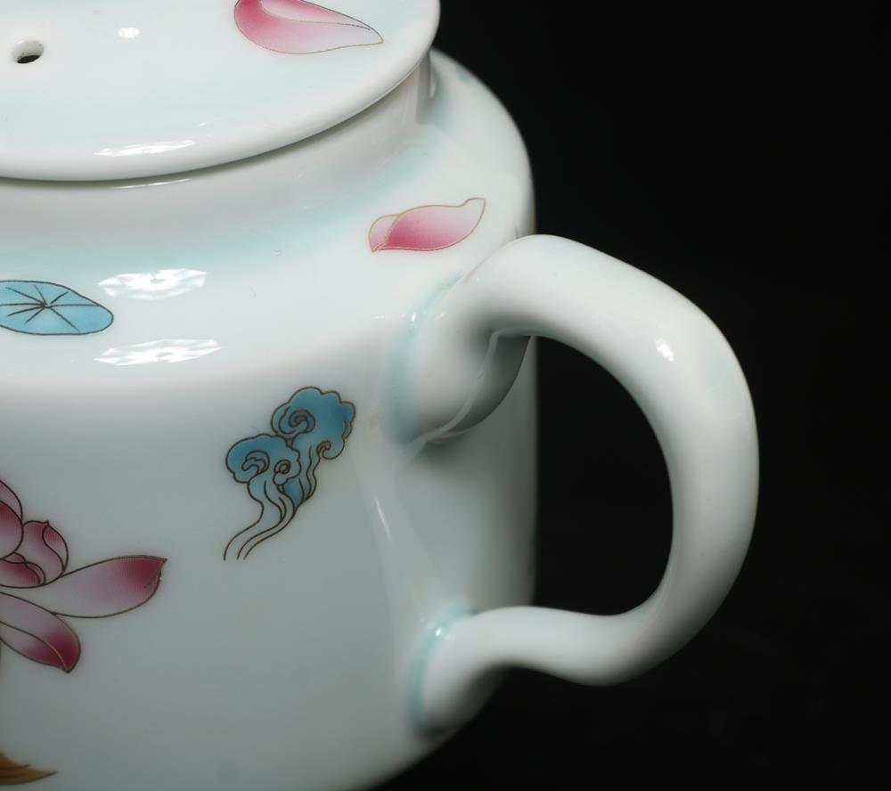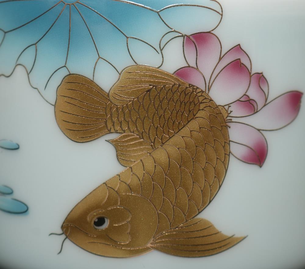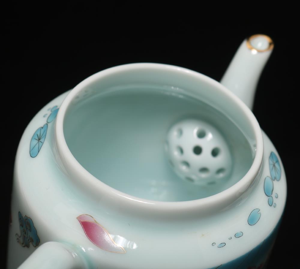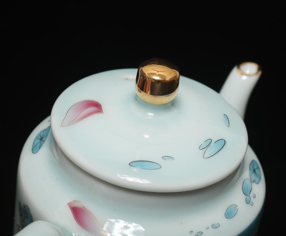 Description - Chinese porcelain teapot, decorated with fish, Underglaze mark on base.