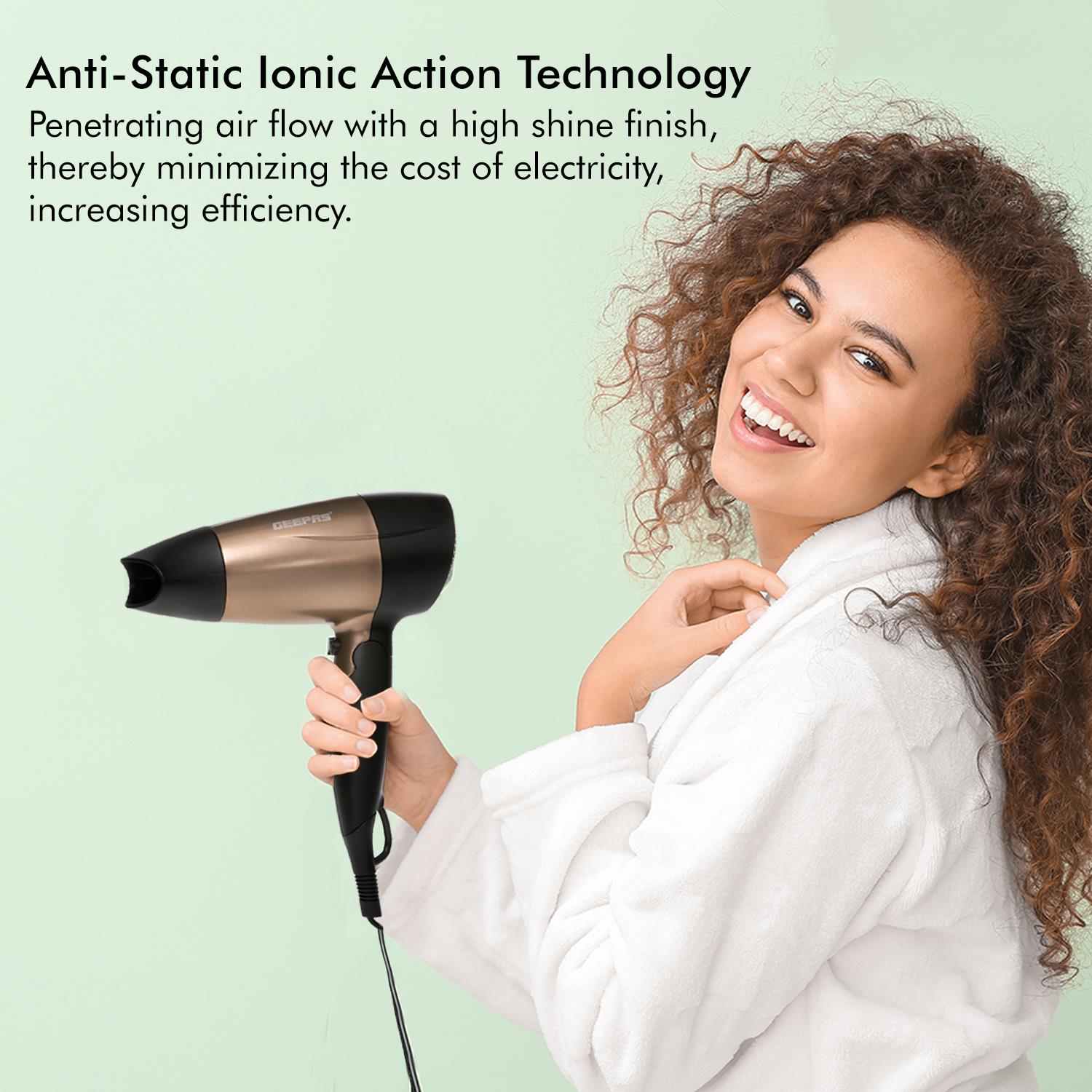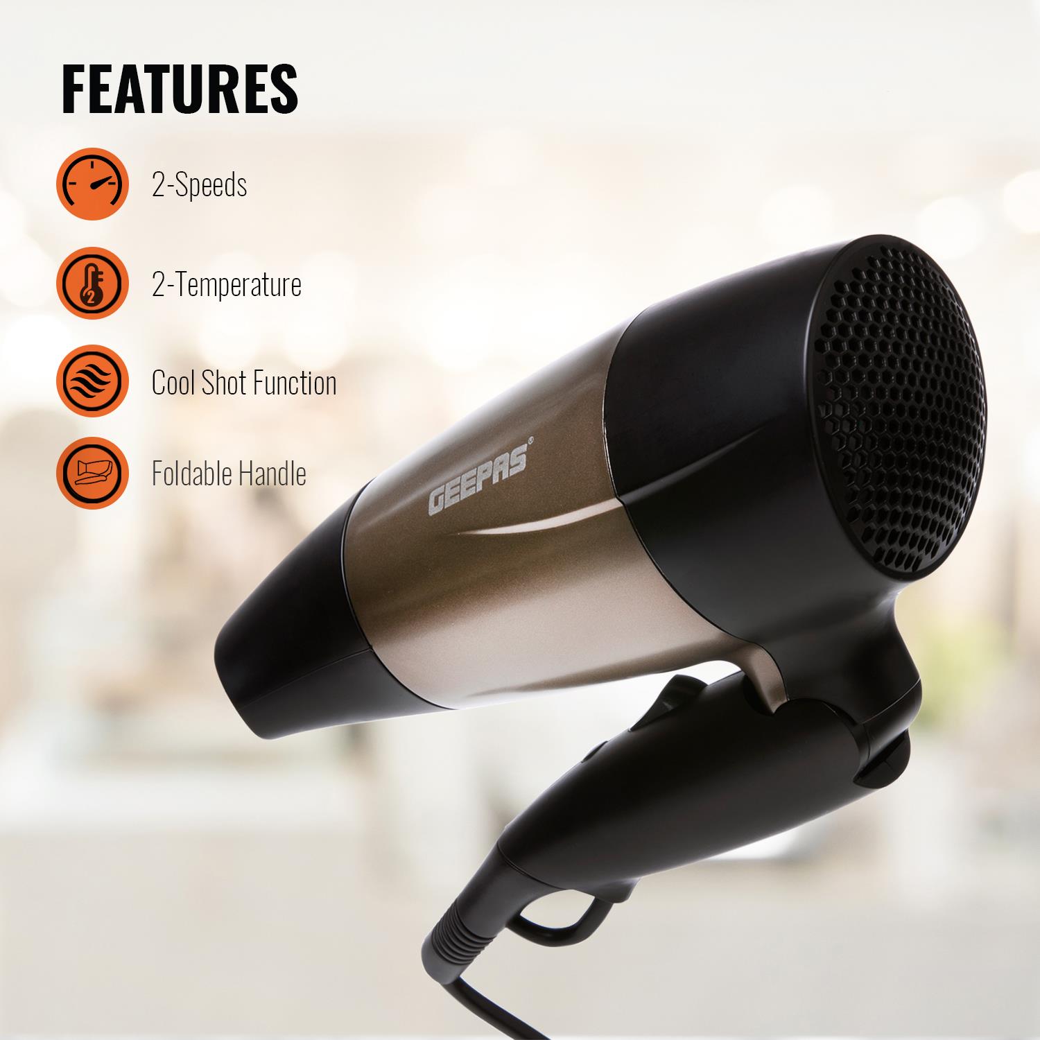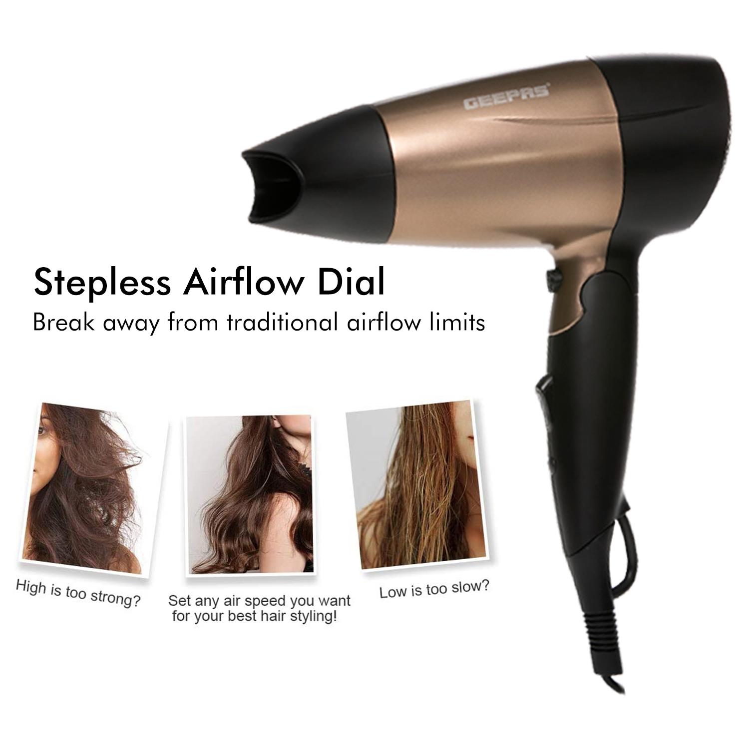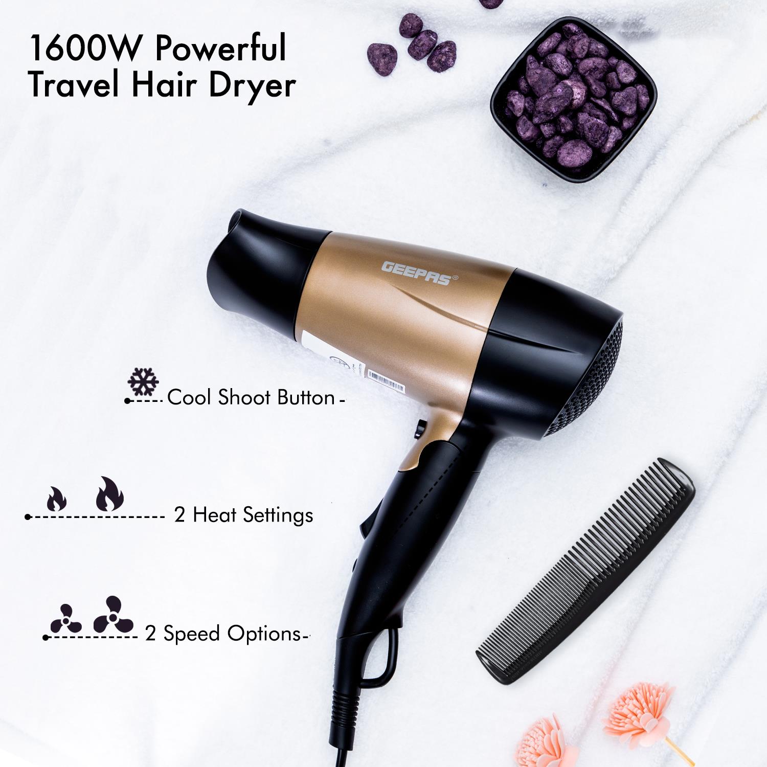 Geepas powerful dryer is perfect for creating super-smooth styles. With 1600W of power and concentrator nozzle, this clever dryer will deliver beautiful looking hair, everyday - whatever style you want to create. Hair will be super glossy and frizz-free thanks to the cool shot function. With variable 2 heat and 2 speed settings, you can tailor your blow-dry to your hair type. Finish with the Cool Shot button for ultra-glossy tresses and a style that stays in place all day and night. Get professional blow-dry results fast with this 1600 Watt hair dryer. Whether you have fine, curly, or super thick hair, this is one of the best hair dryers. You deserve a blowout without frizz, flyaway, or any other kind of foolishness a blow-dryer that's not up to snuff will add to your precious crown. And you deserve to get that flawless look in the comfort of your own home. Say goodbye to frizz and over styled areas!
