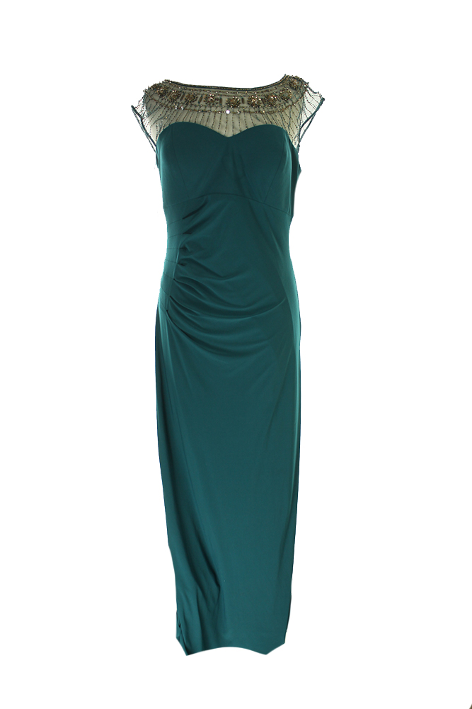 Patra Womens Emerald Sleeveless Beaded Gown 14