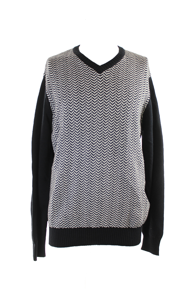 Geoffrey Beene Mens Black Front Intarsia V-Neck Sweater M