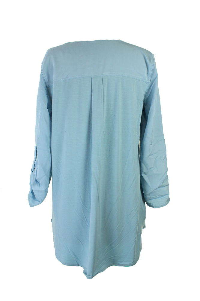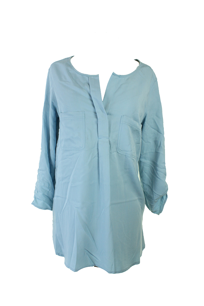 Studio M Womens Soft Blue Tab-Sleeve Pocketed Blouse S
