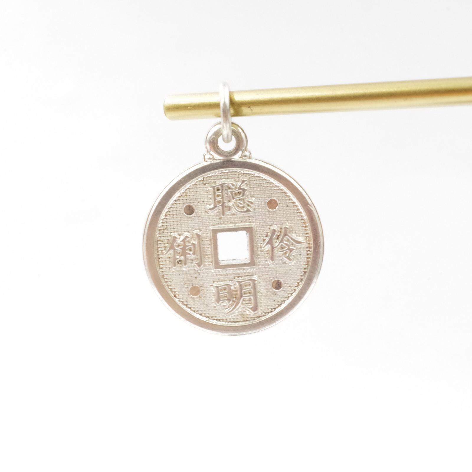 Sterling Silver Men Women Lucky Chinese Character Round Coin Pendant