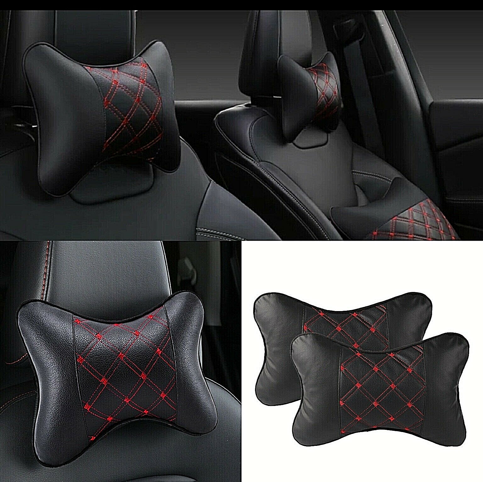 2pcs Car Neck Pillow PU Leather Soft Comfortable Pillow Headrest Cushion