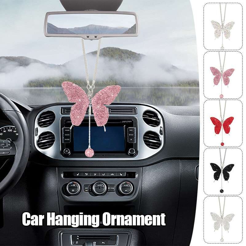 Car Hanging Pendant Ornament Butterfly Car Accessory Diamond Rearview Mirror