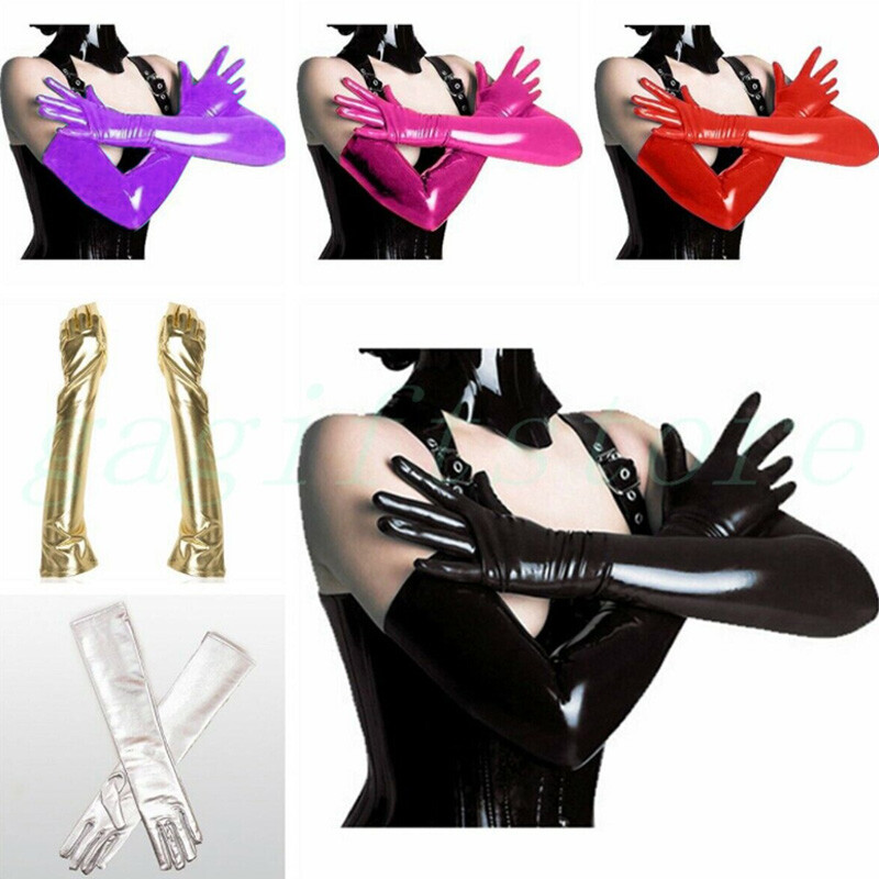 Sexy Women Restraints Long Gloves Enamel Latex Party BDSM Wetlooking Costume Hot