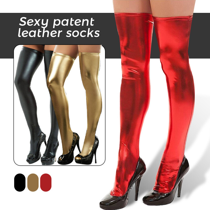 Women Sexy Shiny Stretchy Thigh High Socks Faux Leather Long Stockings Tights