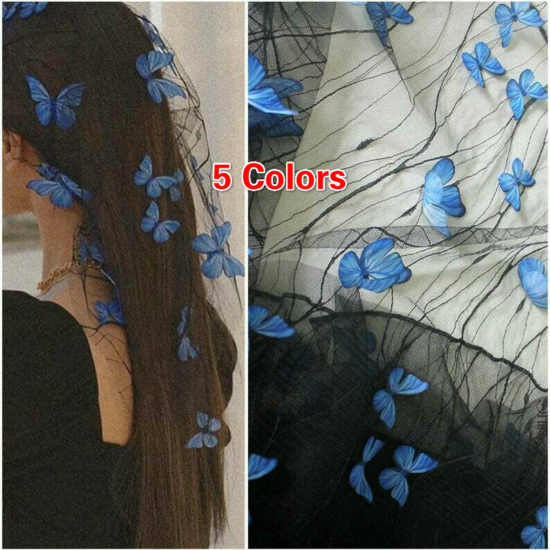 1 Size Lace Fabric 3D Butterfly Black Tulle Mesh Lace Fabric DIY Veil Skirt