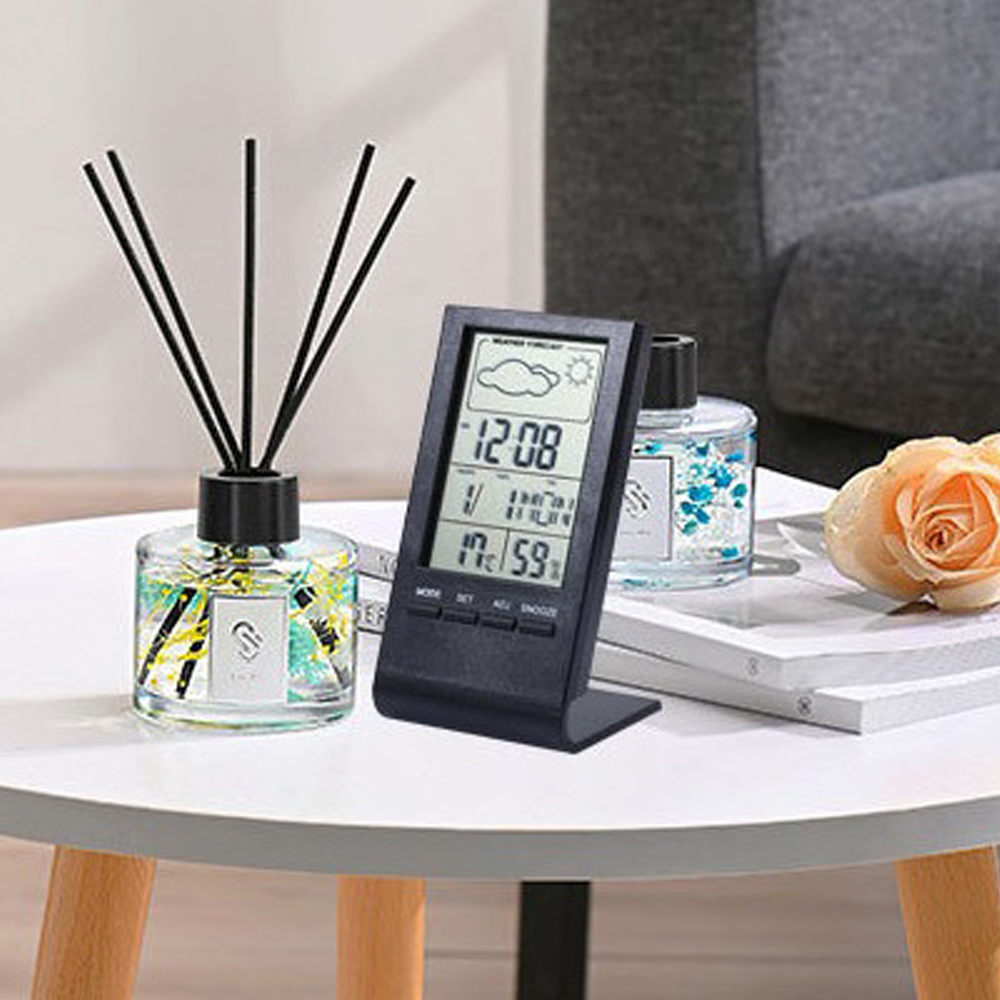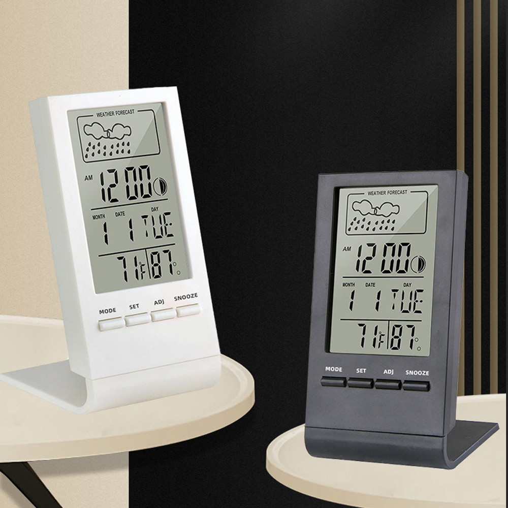 Wireless Thermometer Hygrometer Gauge Indicator Weather Station Electronic Temperature Humidity Monitor Clock for Indoor Outdoor